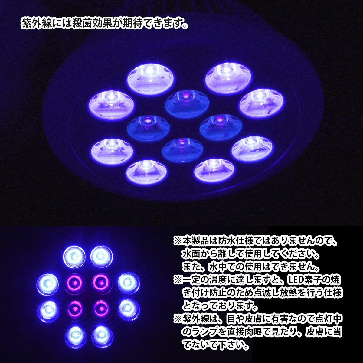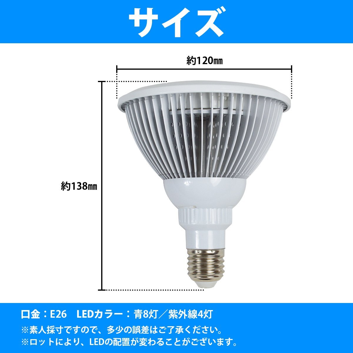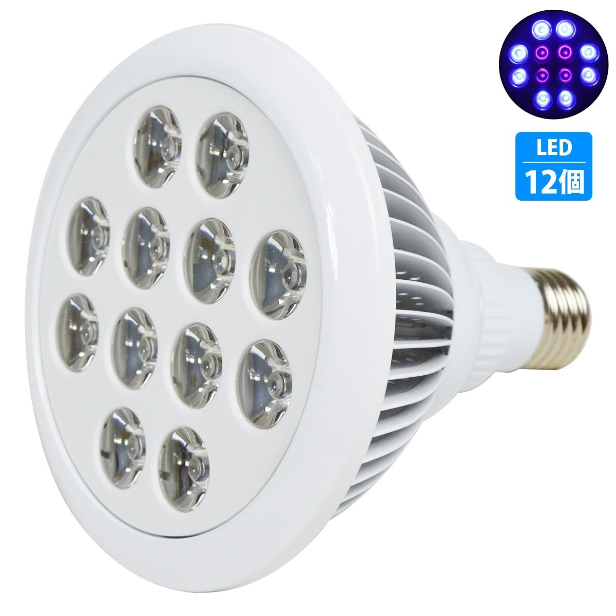 水槽 用 スポット ライト 24W 電球 12LED 青8/紫外線4 口金 E26 アクアリウム 照明 植物育成 水草 サンゴ 熱帯魚 照射角90度