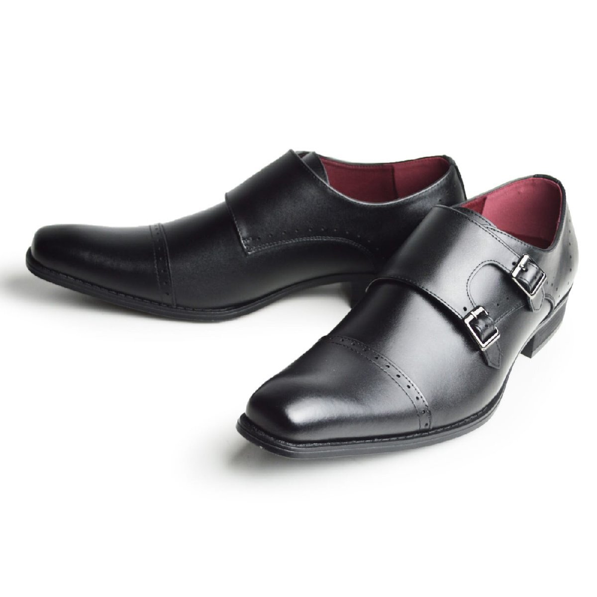 新品■25.5cm ビジネスシューズ 本革 日本製 モンクストラップ 革靴 イタリアンデザイン 冠婚葬祭 フォーマル ストレートチップ レザー