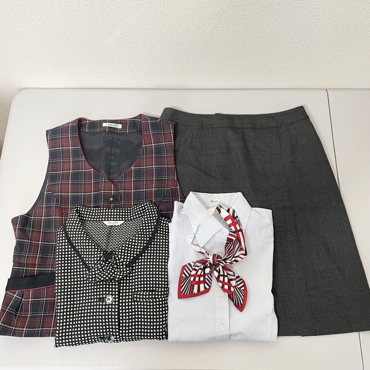 こちらの商品は、中古のスカート、オーバーブラウス、ブラウス、ベスト、リボンの5点セットです。