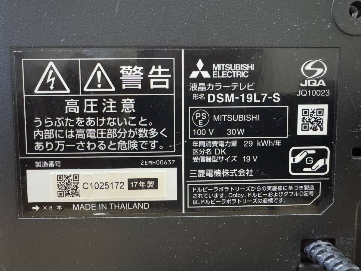 19型 三菱 2017年製 液晶テレビ DSM-19L7-S 管理番号F1850