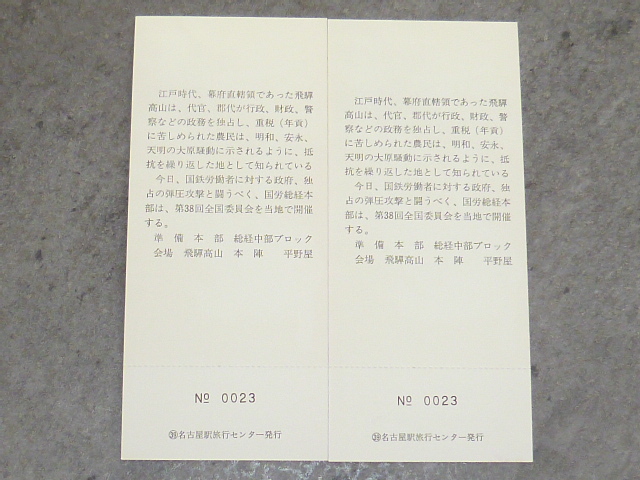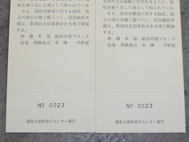 ※ 記念切符★第38回 総務経理協議会 全国委員会★昭和59年9月30日★2枚★名古屋駅旅行センター発行★0023 ※ |
