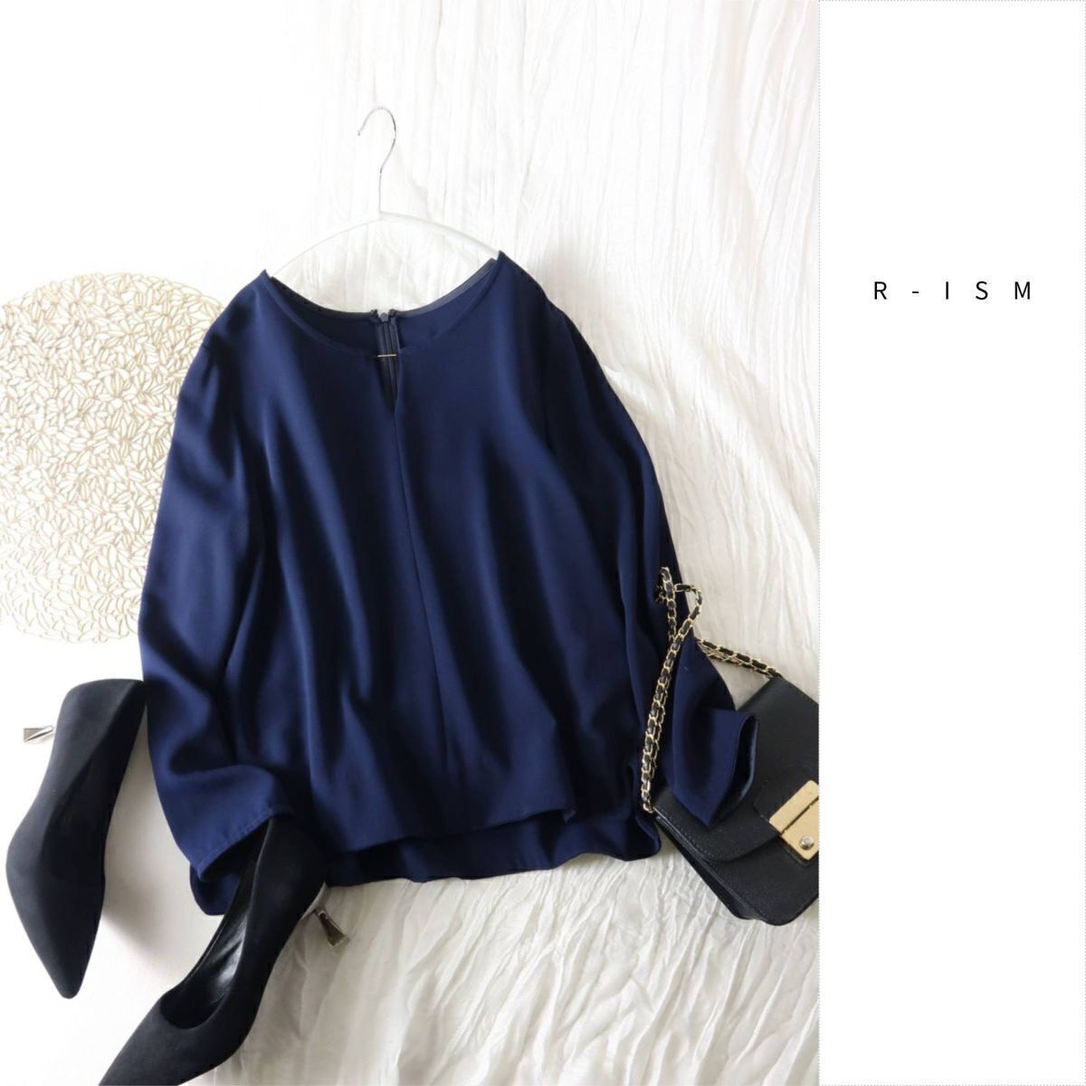 リズム R-ISM☆洗える メタルパーツ付 クルーネックブラウス☆M-S 5696