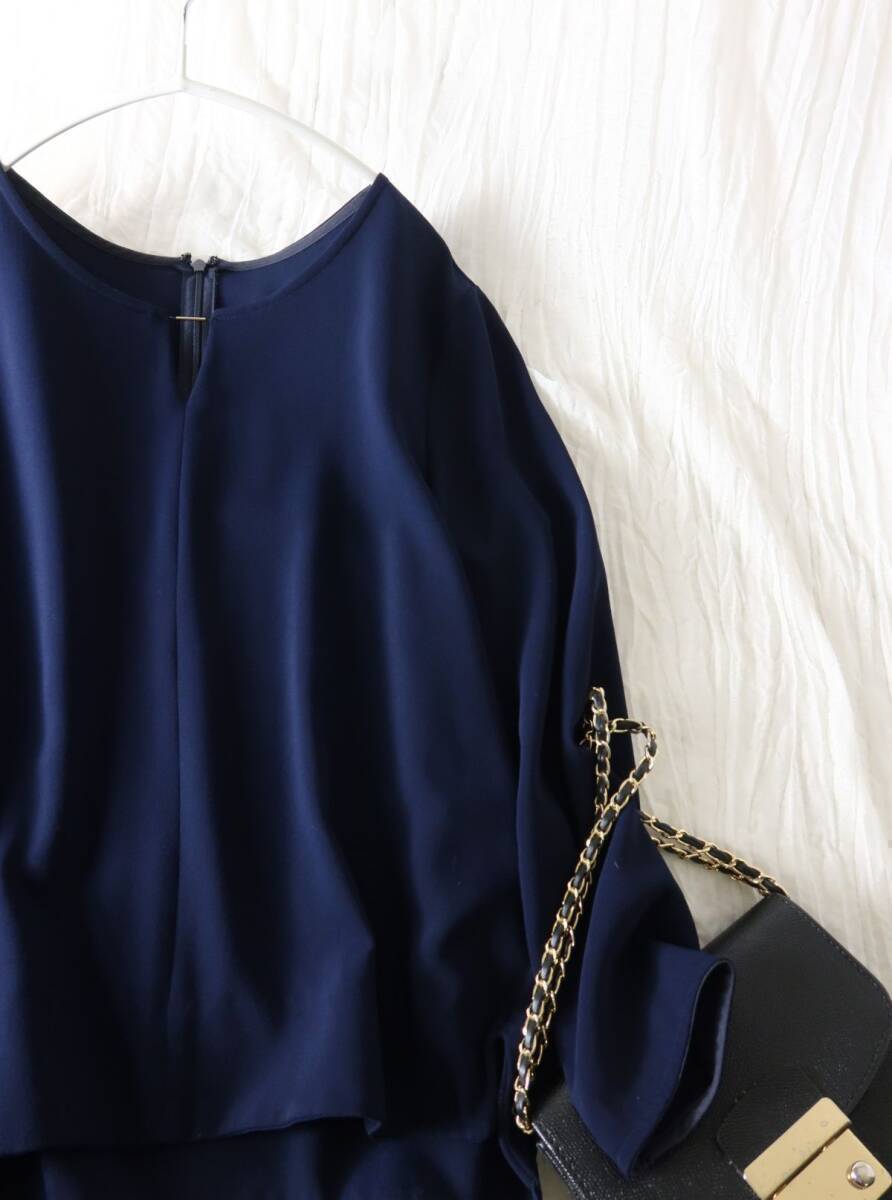 首元のメタルパーツがアクセントのオシャレなアイテム。