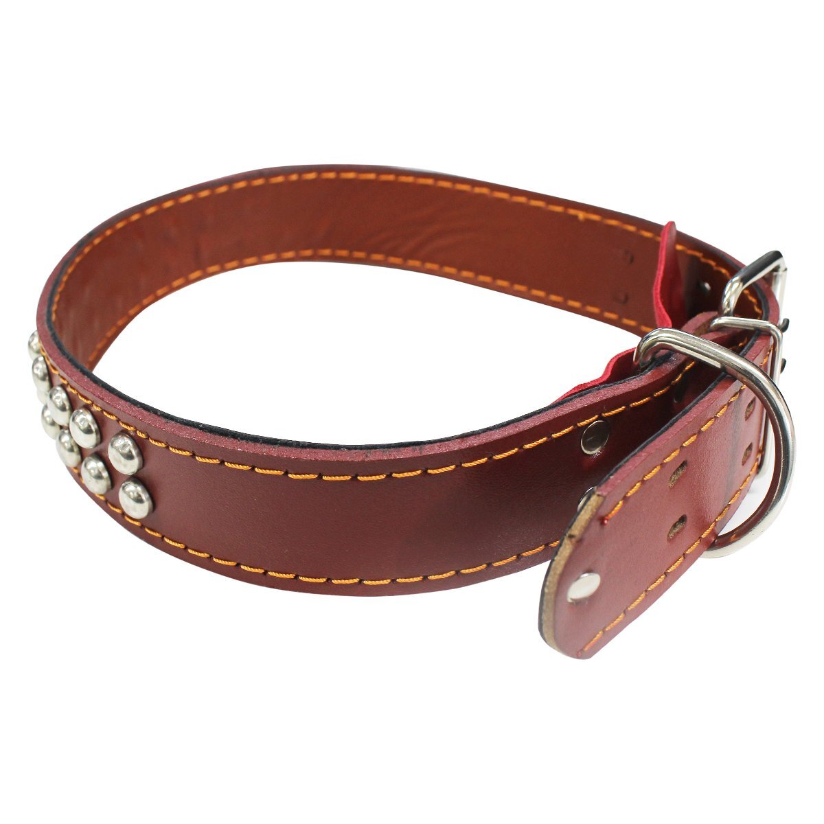 【新品即納】犬 首輪 大型犬 首回り 50~65cm 幅3.5cm 茶 ブラウン レザー 合皮 ボクサー ハスキー シェパード ゴールデンレトリバー