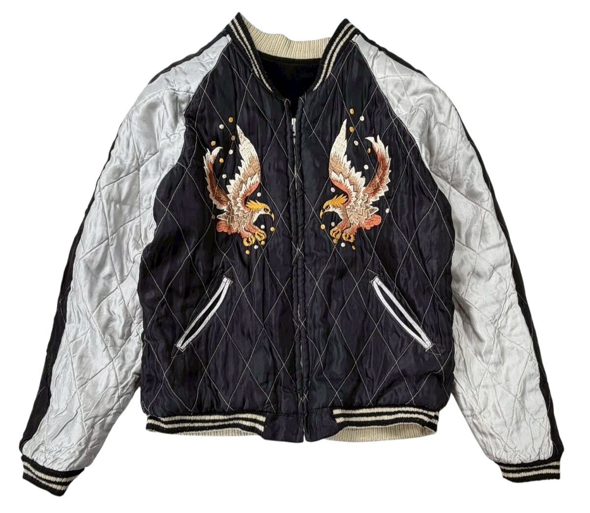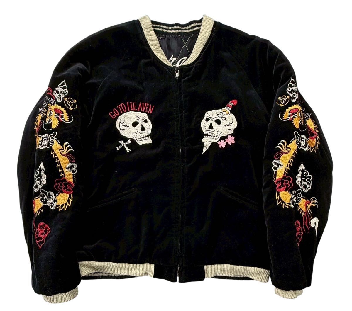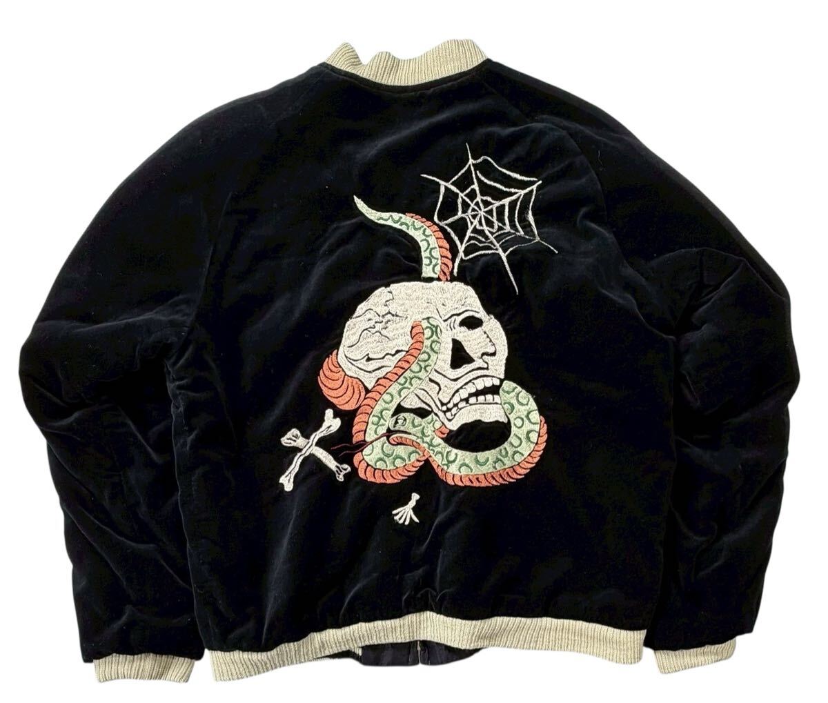 東洋 港商 TT10797 別珍/サテン 中綿 リバーシブルスカジャン スカル 髑髏/鷹 特大