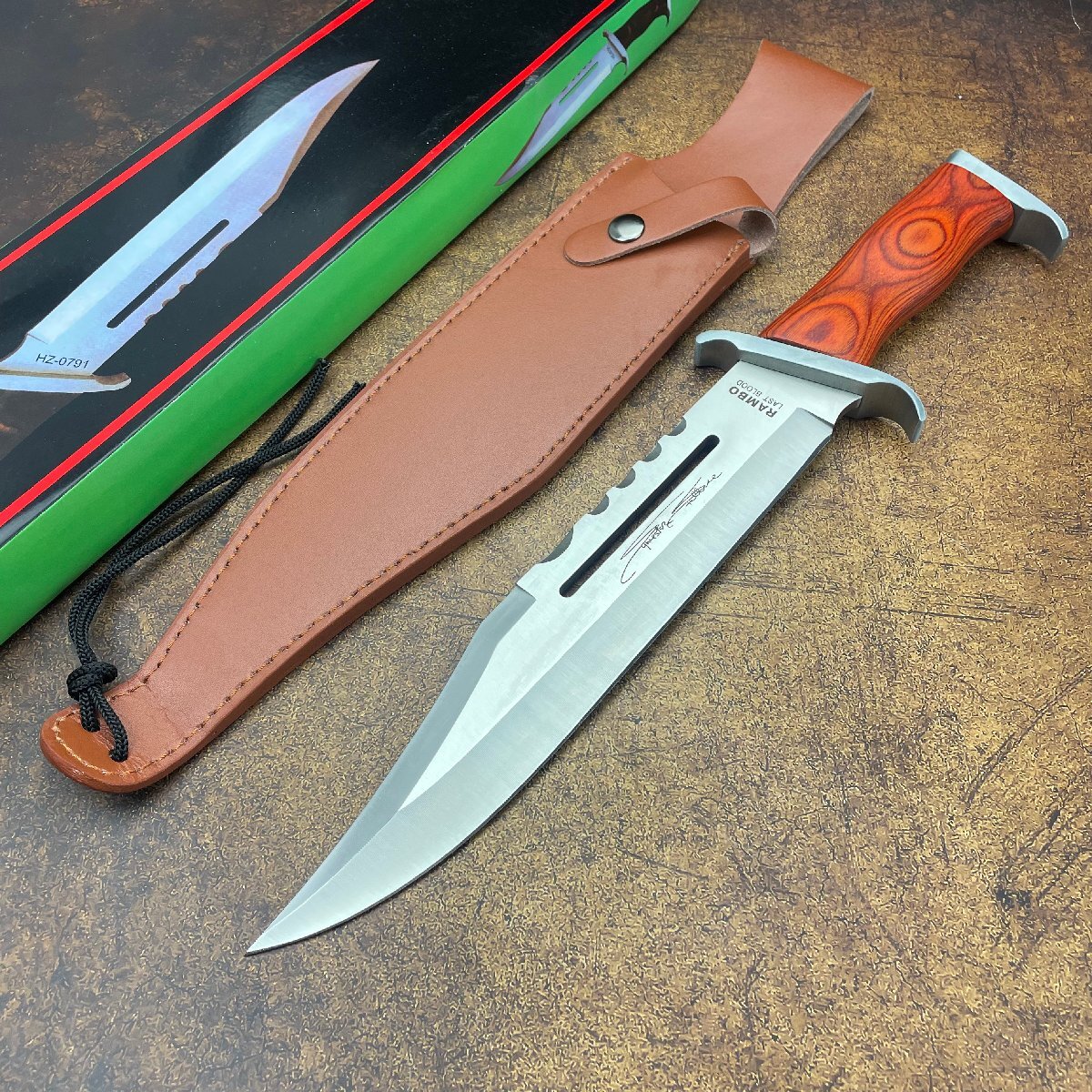 Rambo 刃厚6.0mm 重量感960g サバイバルナイフ 和風 薪割り 大工道具 シース付き ハンティング