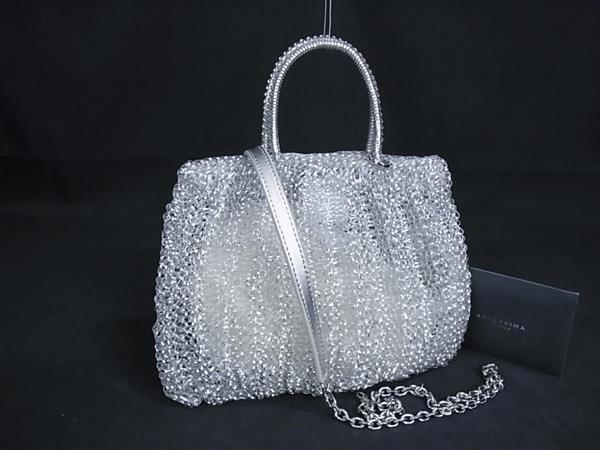 1円 ■極美品■ ANTEPRIMA アンテプリマ ワイヤーバッグ PVCワイヤー チェーン 2WAY ショルダー ハンドバッグ シルバー系 FN9066