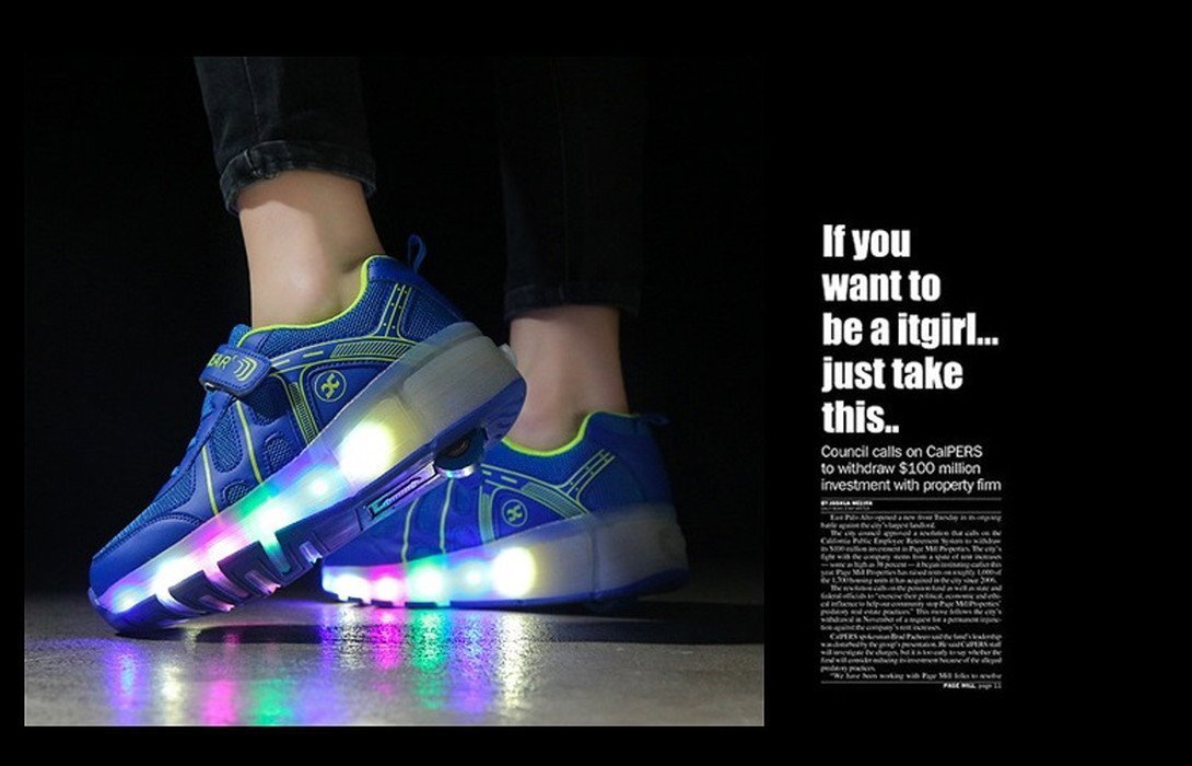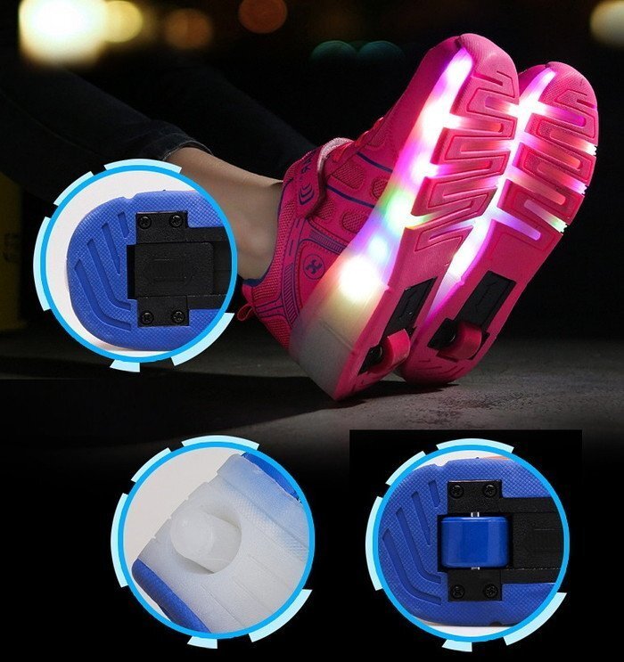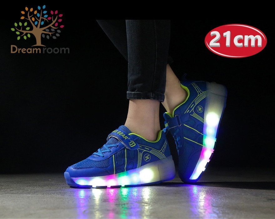 1スタ☆光る☆LED ライトアップスニーカー&ローラーシューズ 一体型 【K-164ブルー 21cm】夜間 スケート靴 反射材 ジョギング 自転車