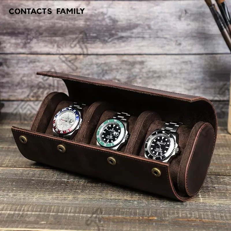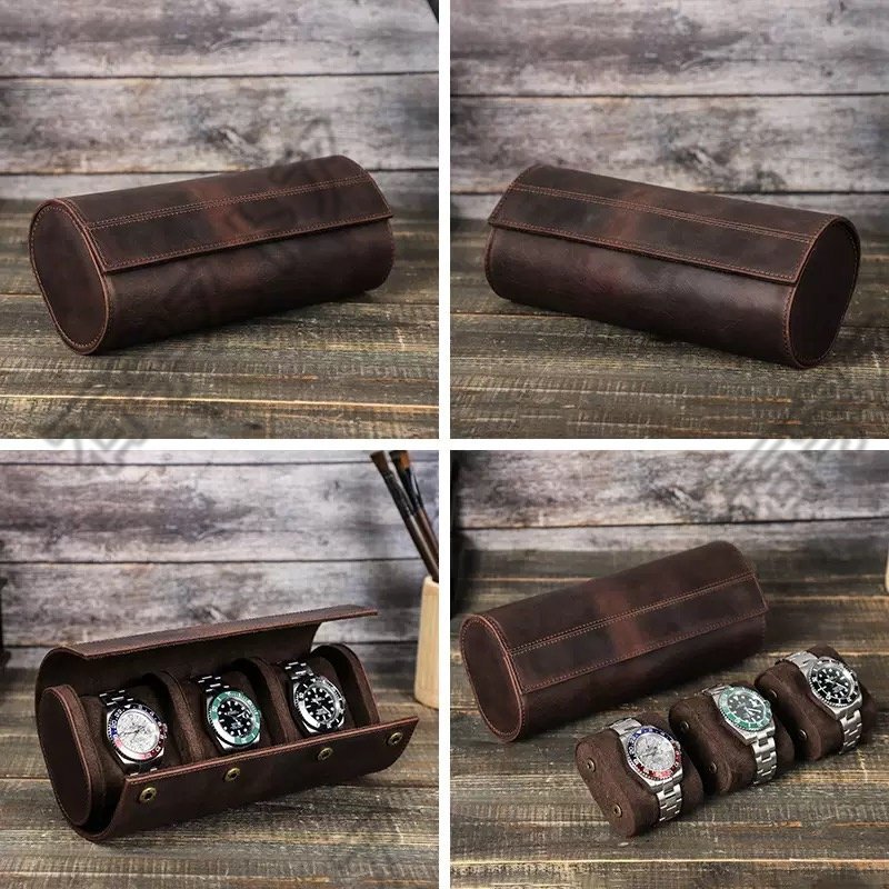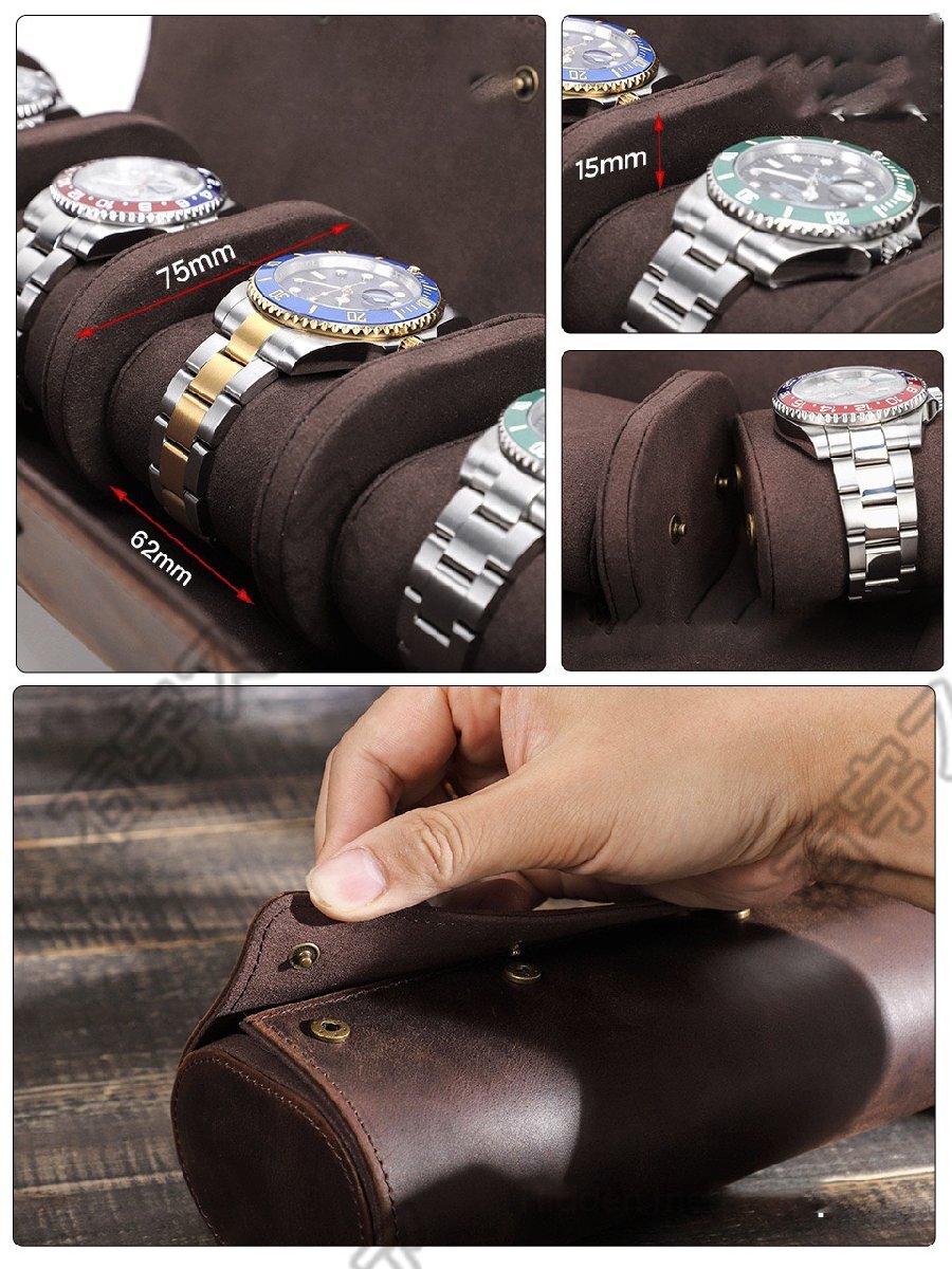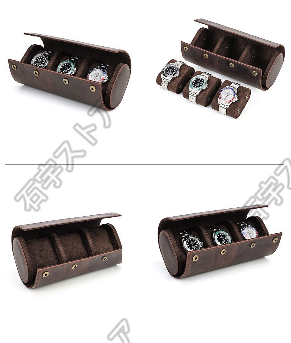 ヴィンテージ腕時計ケース 3本収納 旅行用携帯腕時計収納ケース 牛革ウォッチケース shw111