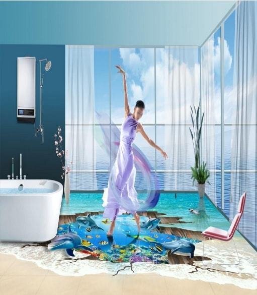 C494 巨大 3D フロアマット 1.2m*2m* 海 水族館 風景 景色 リフォーム リメイク 防音 断熱 滑り止めシート 床 壁 天井 はがせるシール