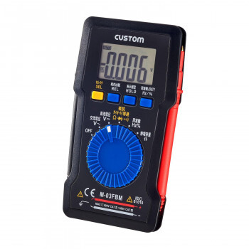 | 仕様 | ■直流/交流電圧:4/40/400/600V ■抵抗:400/4k/40k/400k/4M/40MΩ ■導通試験:約50Ω以下でブザー ■ダイオードテスト ■静電容量:50n/500n/5μ/50μ/100μF ■周波数/デューティー比(Hz/%) ■リラティブ測定(相対比較) |