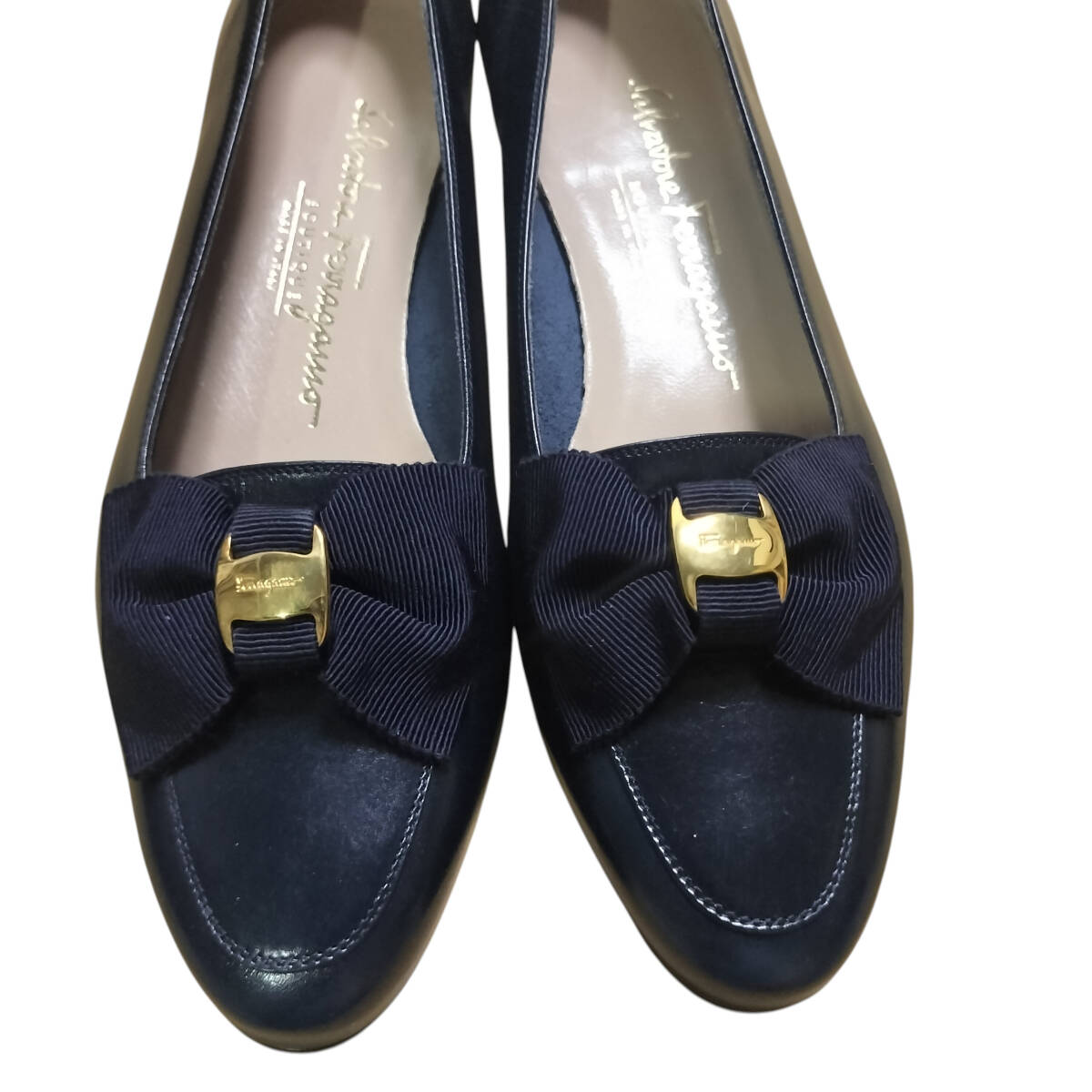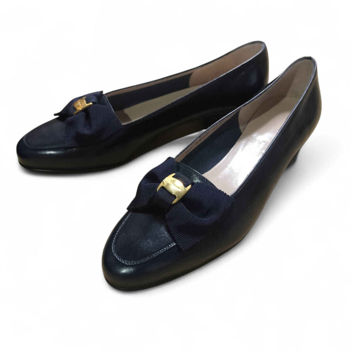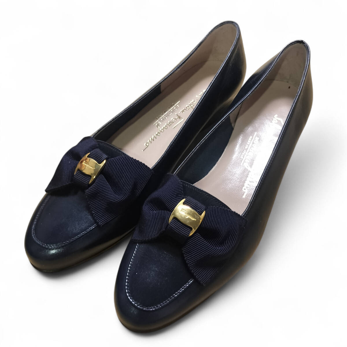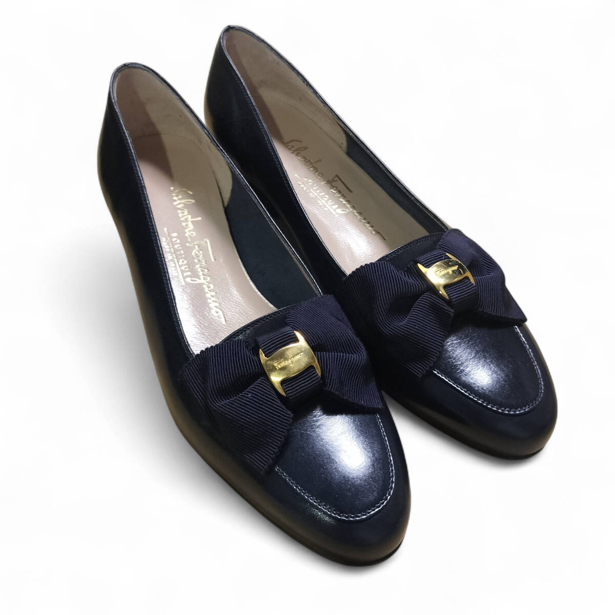 【未使用級】Salvatore Ferragamo サルヴァトーレフェラガモ フェラガモ パンプス ガンチーニ ネイビー 6.5C 23.5cm シューズ レディース