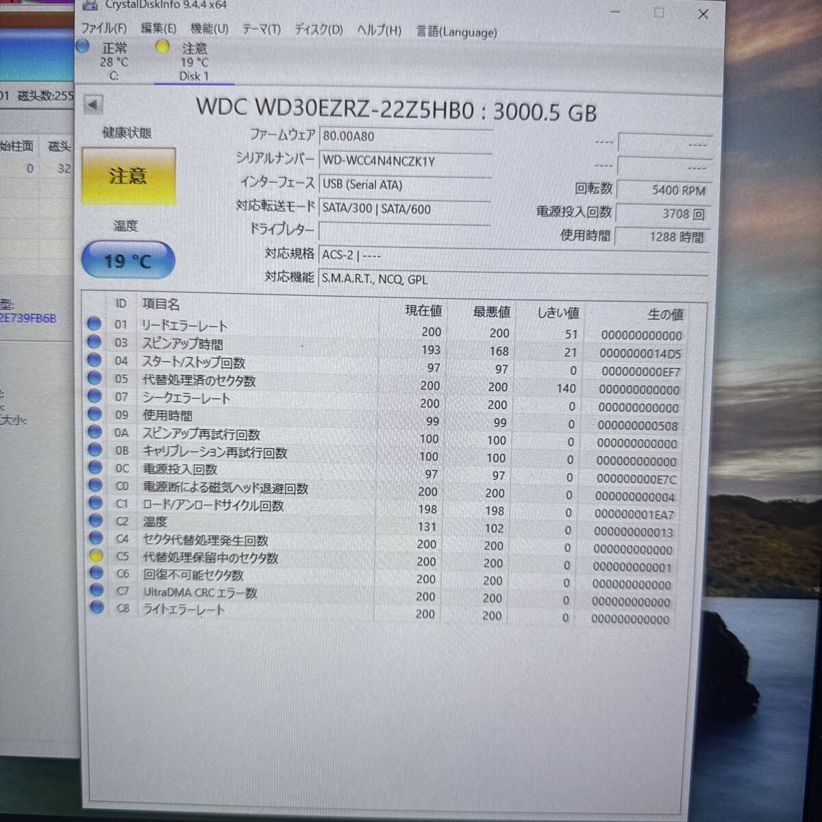 ・CrystalDiskInfoにてC5黄色表示しましたので、ジャンク扱いとして出品致します。
