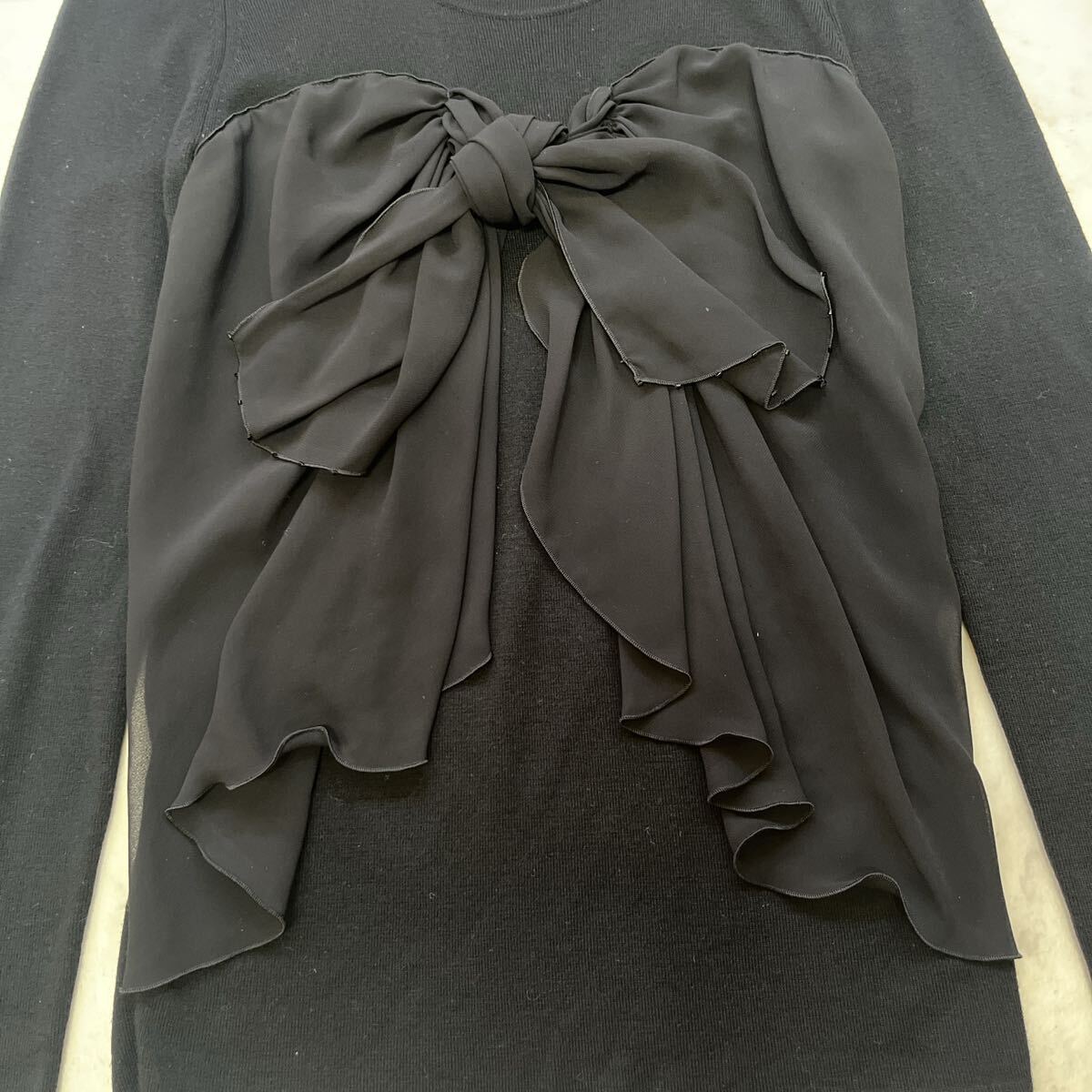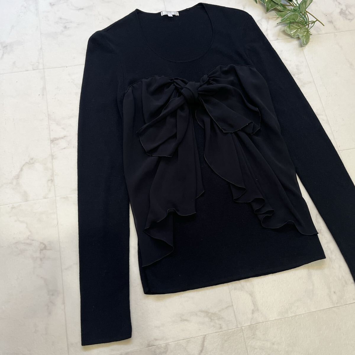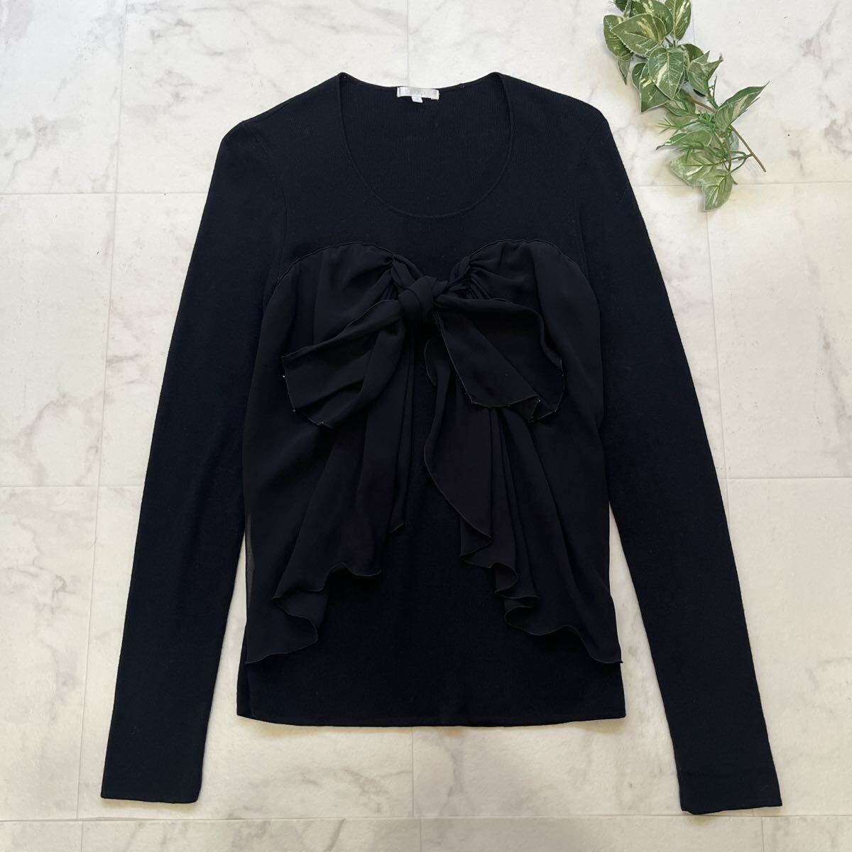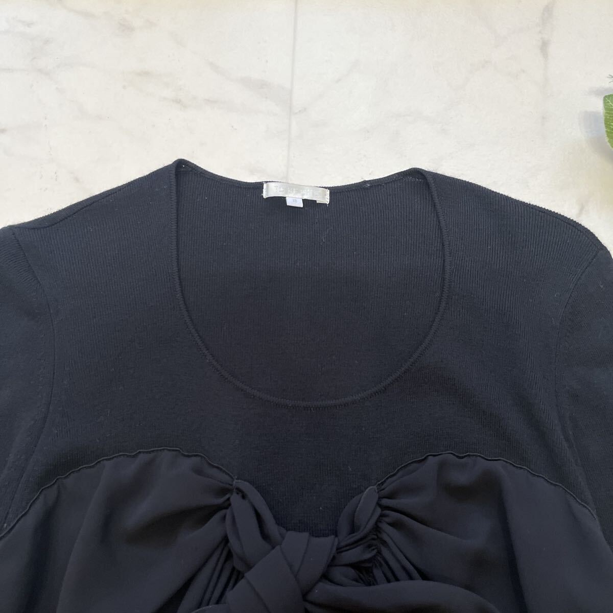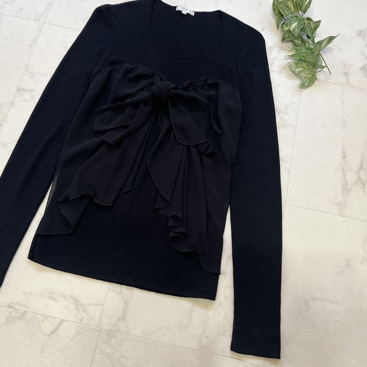 美品 TO BE CHIC フロントリボンニット ビーズ 黒 サイズ2 ウール混