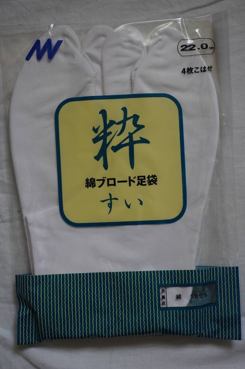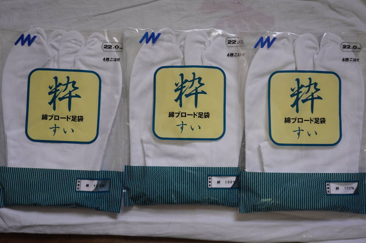 訳あり=長期在庫品)即決!検品のため開封の白足袋3足 綿ブロード 4枚こはぜ 22,0cm送料185円~ 2番