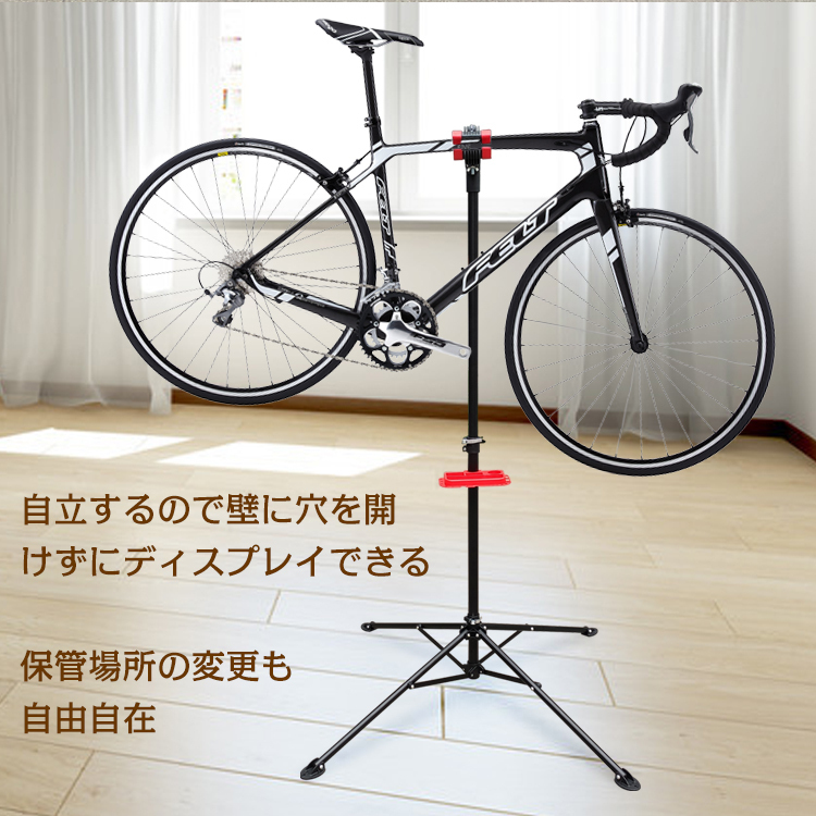 送料無料 自転車 スタンド 屋内 1台 省スペース ロードバイク メンテナンス ディスプレイ 吊り下げ サイクル ラック 工具トレー付き ny326