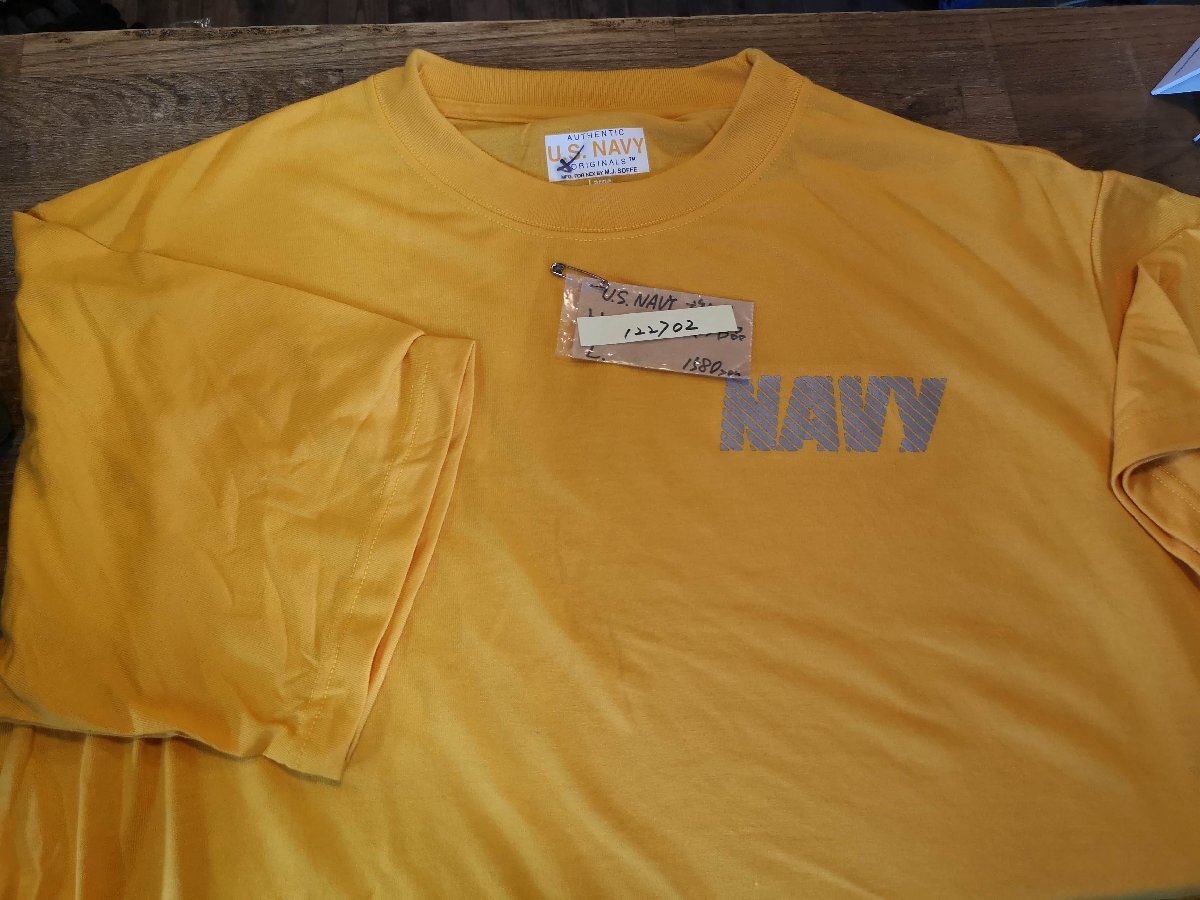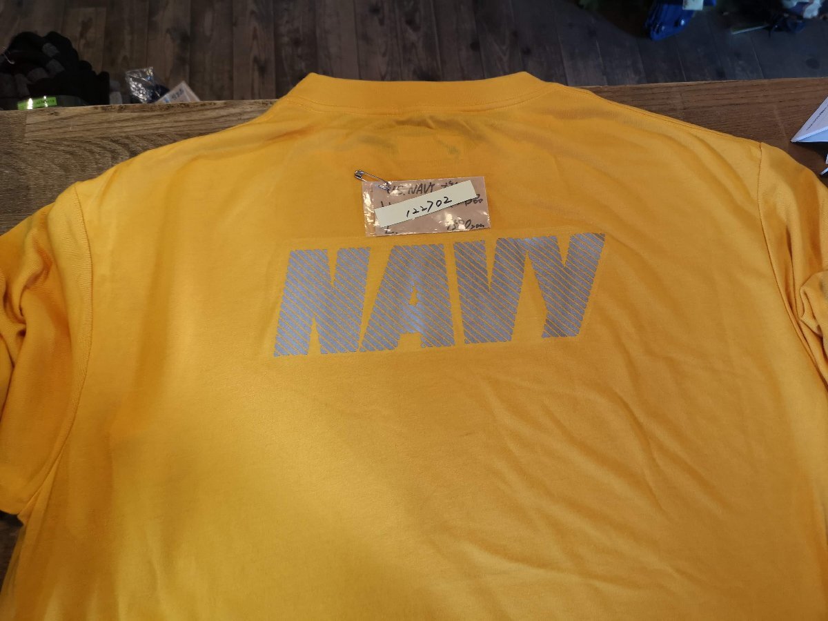 5枚目までの写真は流用です、U.S. NAVYにて採用されているSOFFE社製のトレーニング用Tシャツのセカンドコンディション(傷品 ちょいヨゴレやプリント剥がれ・小さな傷など)です。 軍採用のトレーニングTシャツのためしっかりとした作りになっており、ポリエステル100%で冬場や梅雨時の洗濯時にも速乾性に優れています。 デザインも発色の良い色合いで、胸と背中にあるリフレクタープリントが特徴的です。 夜のジョギング時などにリフレクタープリントが光で反射し、安全性とデザイン性を兼ね備えたTシャツです。 USサイズのM(身幅55cm/肩幅50cm/着丈68cm/袖丈25cm ) L (身幅60cm/肩幅52cm/着丈68cm/袖丈25cm ) XL(身幅63cm/肩幅56cm/着丈72cm/袖丈27cm ) 素材:ポリエステル ●状態:デッドストック※#2コンディション クロネコネコポス便200円でお送りします、落札価格にプラスしてください。ユーズドです。
