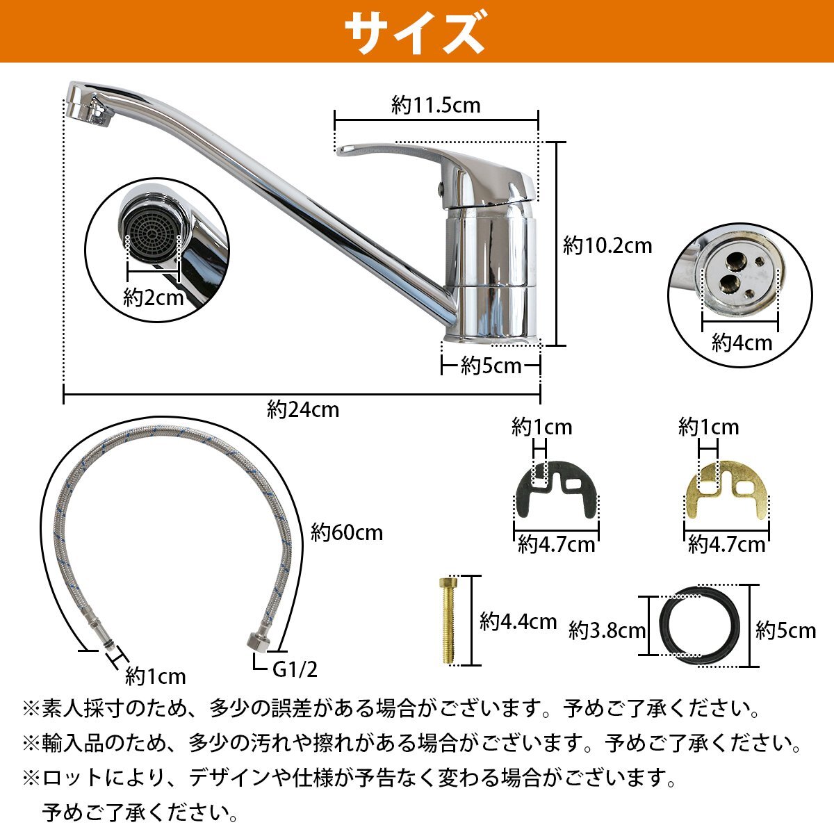 キッチン 混合水栓 シングルレバー 蛇口 混合栓 リノベーション 洗面台 台所 水栓 金具 温水冷水 温冷 対応 60cm ホース