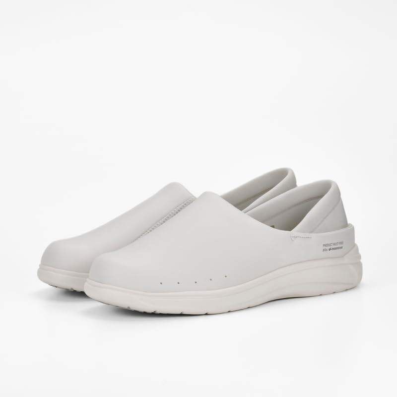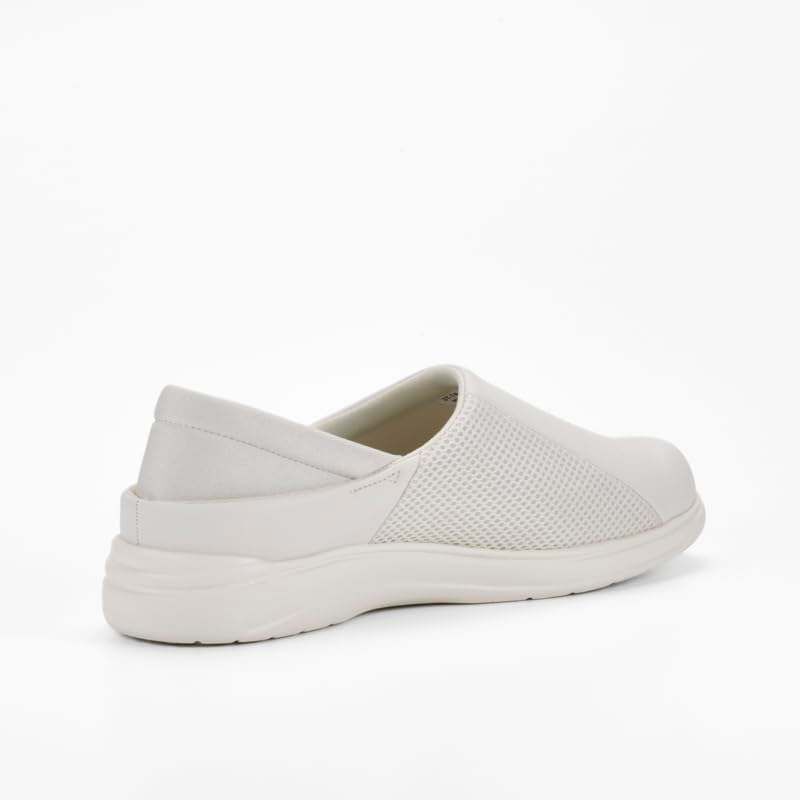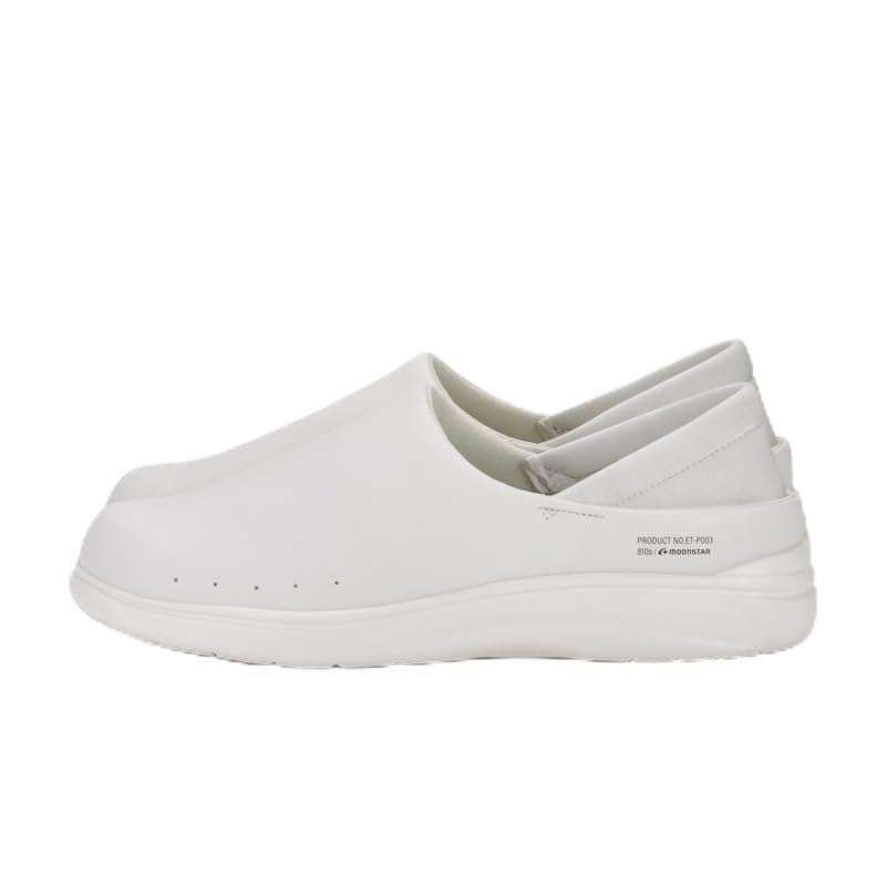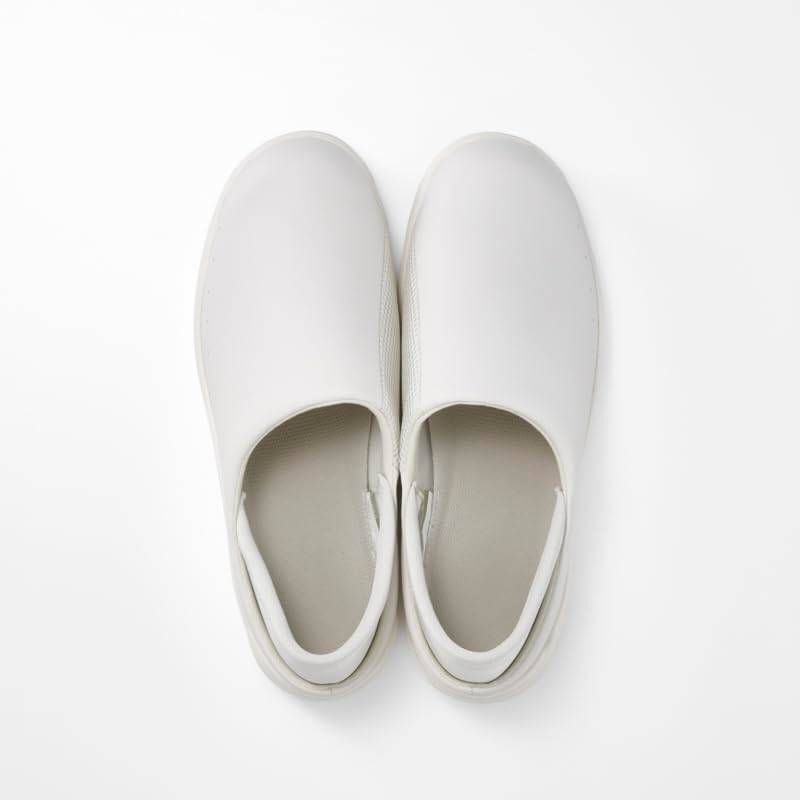 ET-003は医療現場での安全性と防汚性を考慮し、合成皮革で甲部分をカバーしました。ライニングには通気性の高い2層構造のメッシュ材を採用し、蒸れを考慮した設計に仕上げました。踵を踏むことでスリッパとしても利用可能です。弾力性に優れたミッドソールとクッション性の高い2層構造のインソールで快適性を追及しました。必要な機能を最小限にまとめ、快適な作業をサポートします。