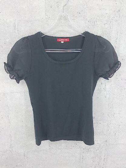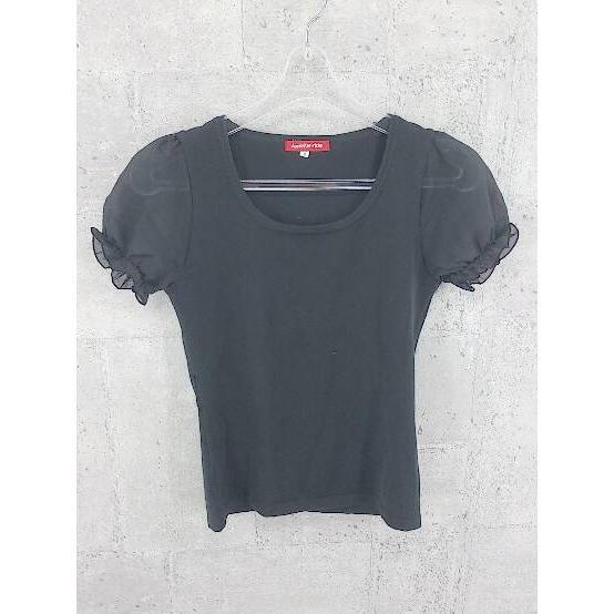 ◇ aquweiser-riche パフ シフォンスリーブ シースルー コットン ニット 半袖 セーター 2 ブラック *
