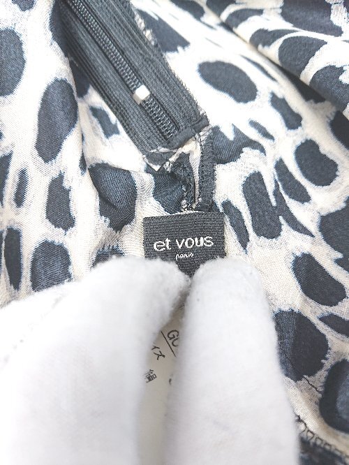 ◇ ⊂ et vous エヴー 総柄 フレンチスリーブ 膝丈 ワンピース サイズ38 ベージュ ブラック レディース E