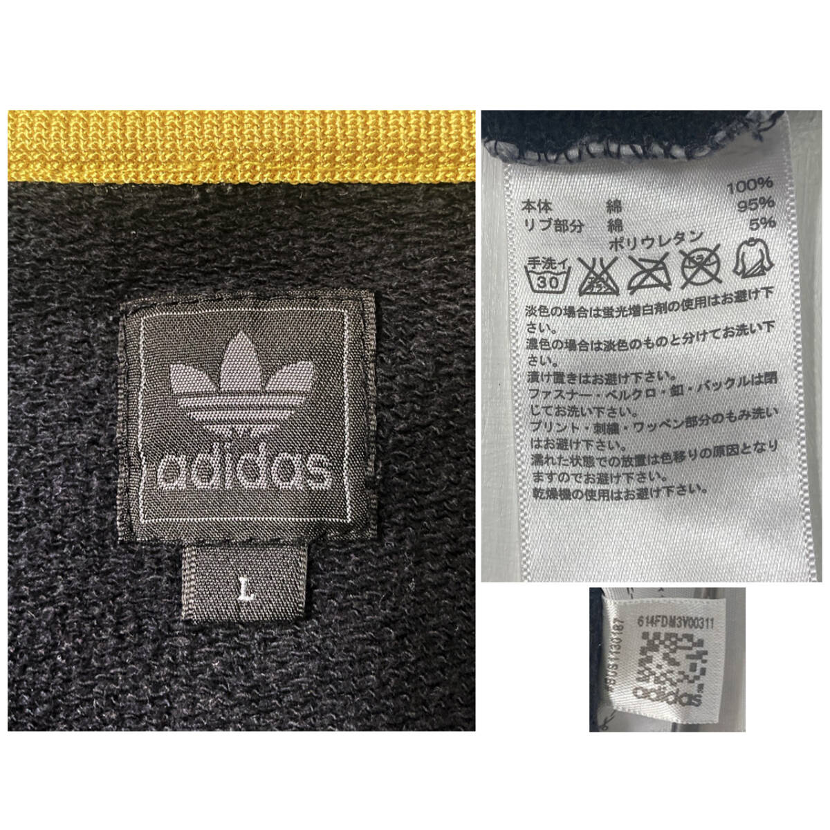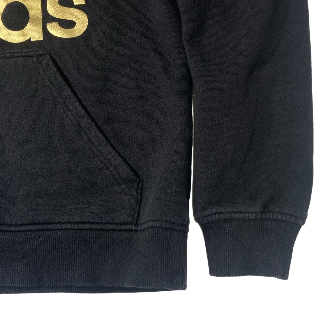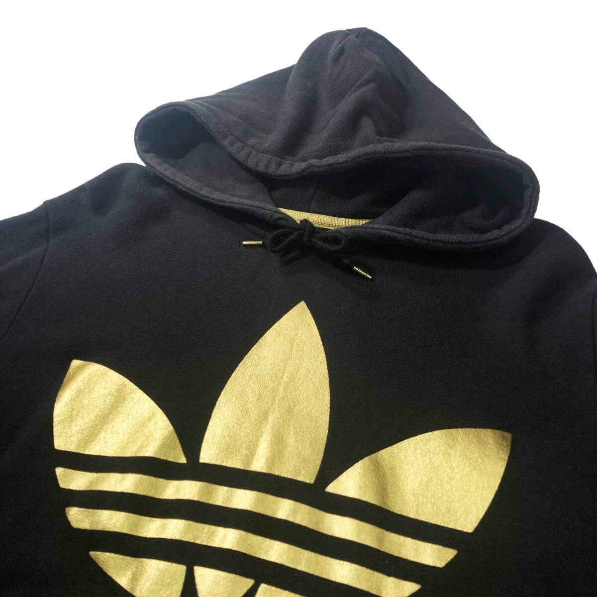【USED】アディダス adidas パーカー フーディー ゴールド トレフォイルロゴ ビッグプリント 古着 ブラック( L サイズ ) ☆送料無料☆