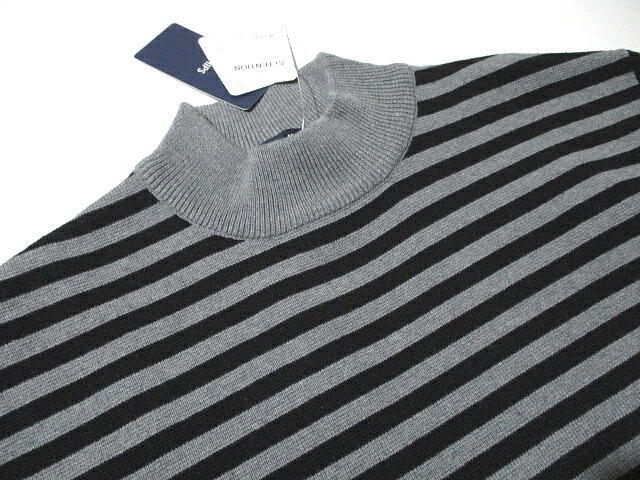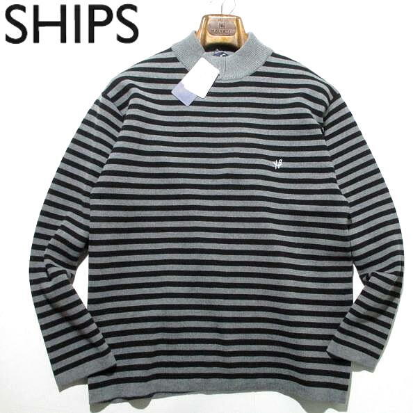 新品 未使用▼ シップス モックネック ボーダー柄ニット セーター 黒 グレー SHIPS Lサイズ ハイネック