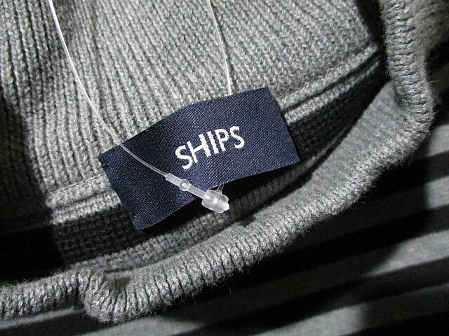 日本を代表するセレクトショップ、シップスのモックネック ニットです。黒、グレーのボーダー柄で、胸にはワンポイントの刺繍入り。定価は9900円、新品、未使用ですのでお買い得です!