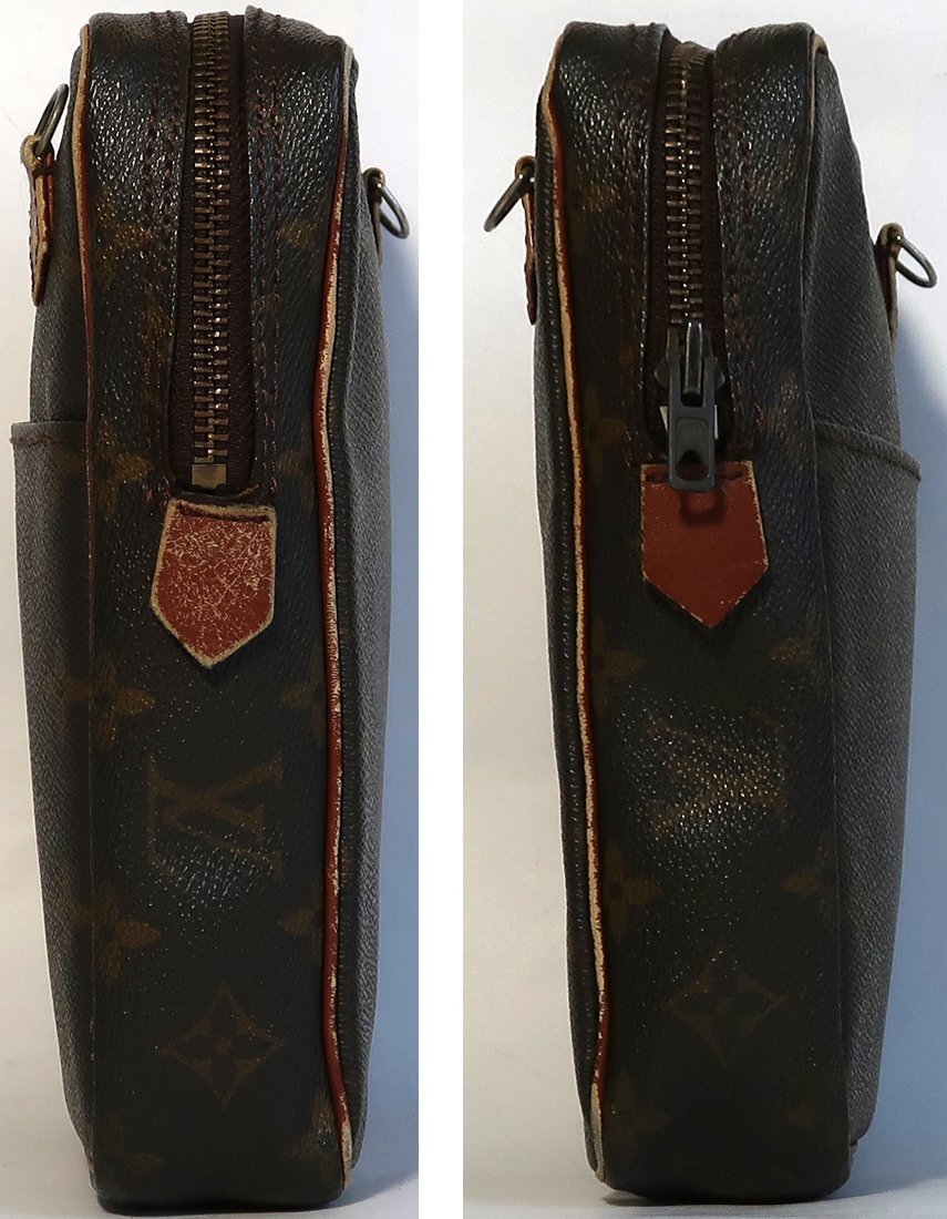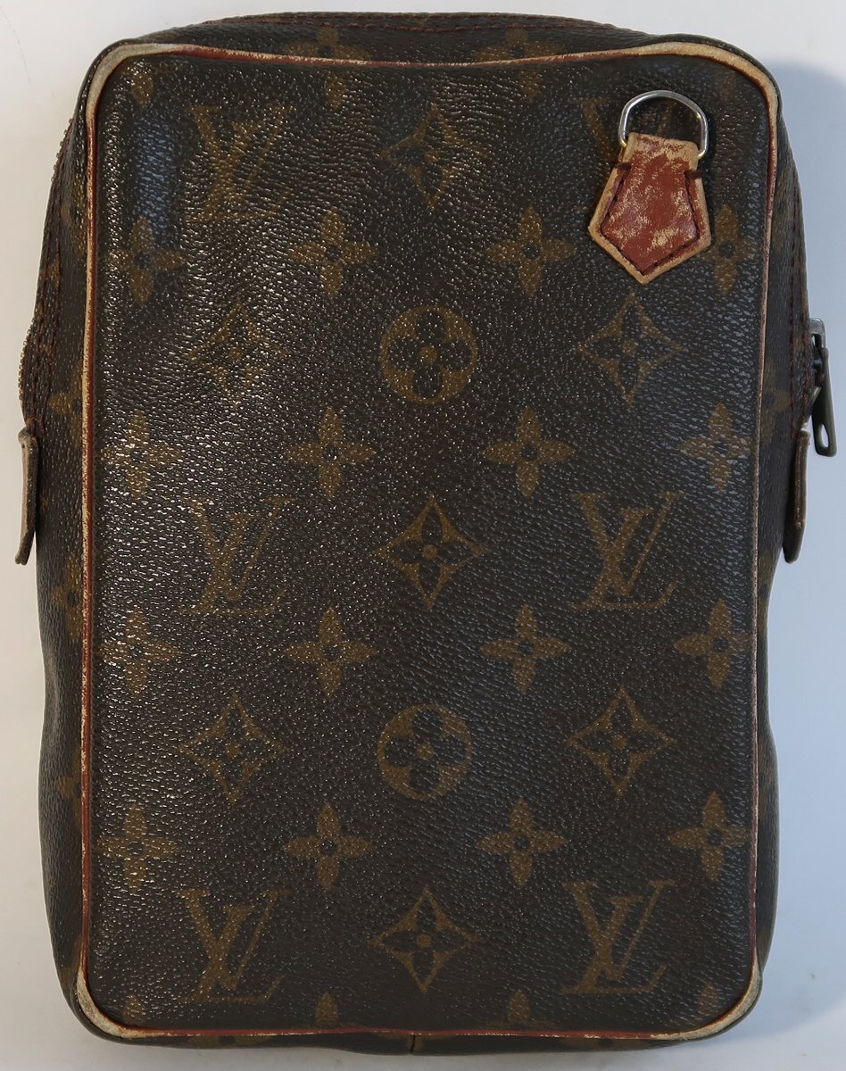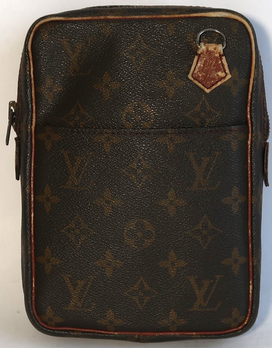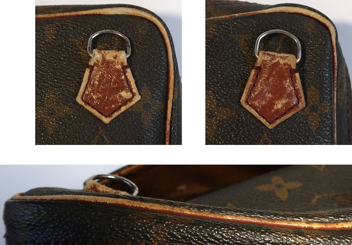 出品は画像のバックのみです。ショルダーストラップの肩パッドはおそらく変更されております。オリジナルは表面がモノグラム柄でした。それがヴィトン製ですが表が革のタイプに交換されています。バックは使用品ですので汚れや擦れはあります。モノグラム地は変色はありますがひどいダメージはないです。部分的に革が使用されておりますが、擦り傷や汚れあります。バックの内側も擦れあります。ショルダーストラップの金具はメッキの色落ちは擦れあります。サイズはW14xH20xD4.5cmくらいです。ショルダーストラップの長さは113cmくらいです。