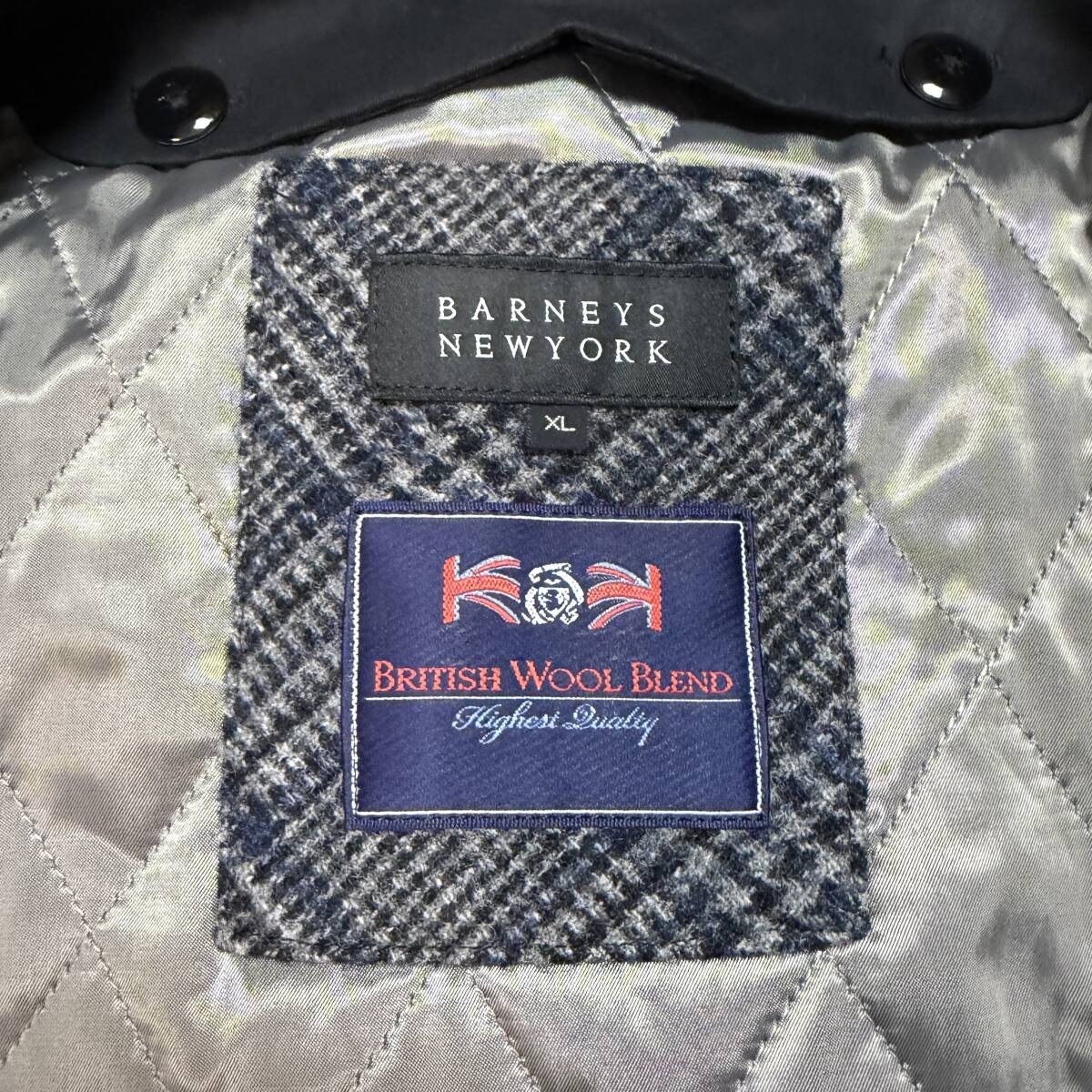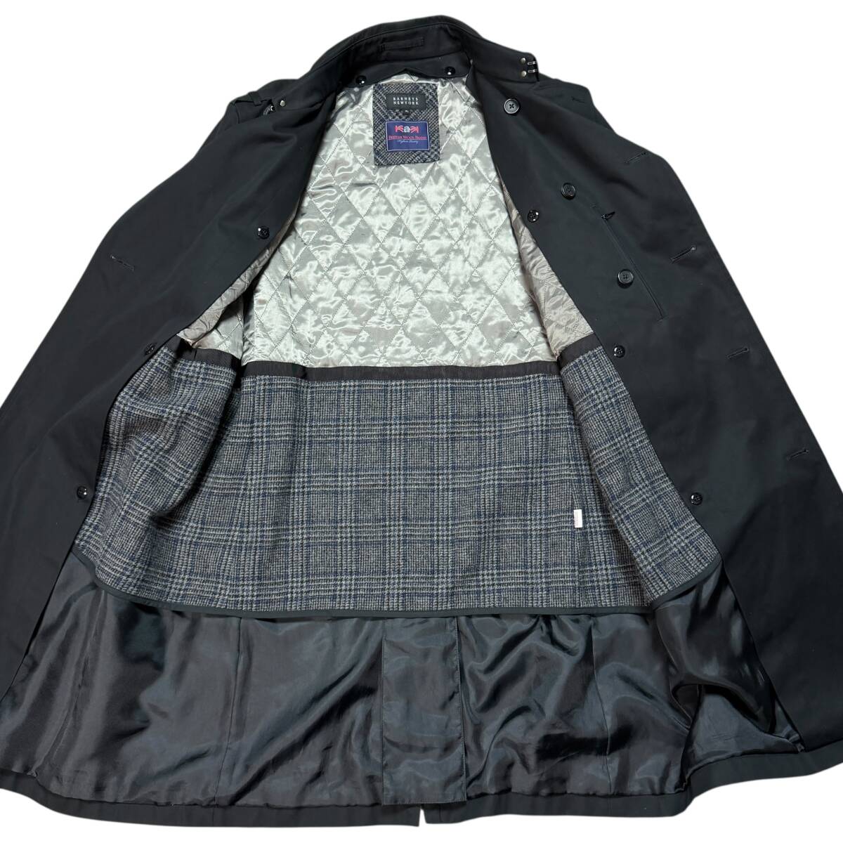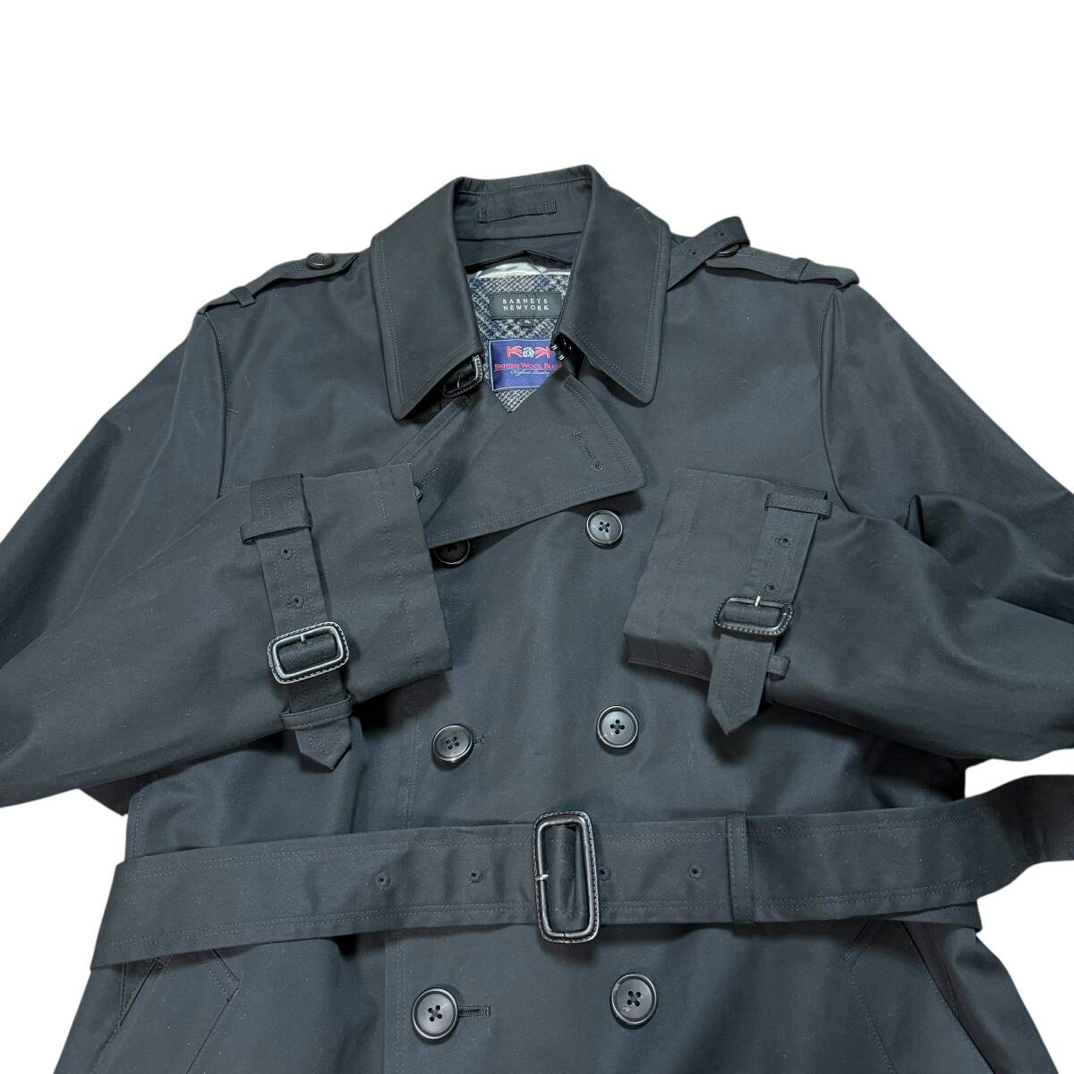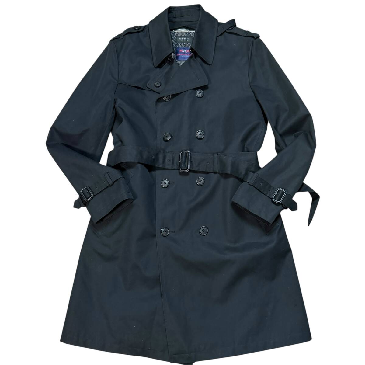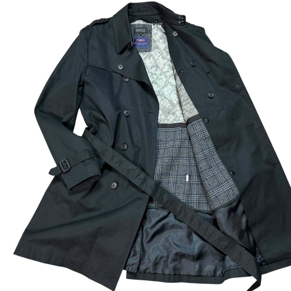 3745 美品●希少XL BARNEYS NEW YORK バーニーズニューヨーク トレンチコート ツイードライナー British Wool Blend ベルト付き ブラック