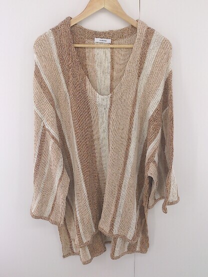 ◇ JEANASIS ストライプ スリット 長袖 ニット カットソー サイズF ブラウン ベージュ アイボリー系 レディース E