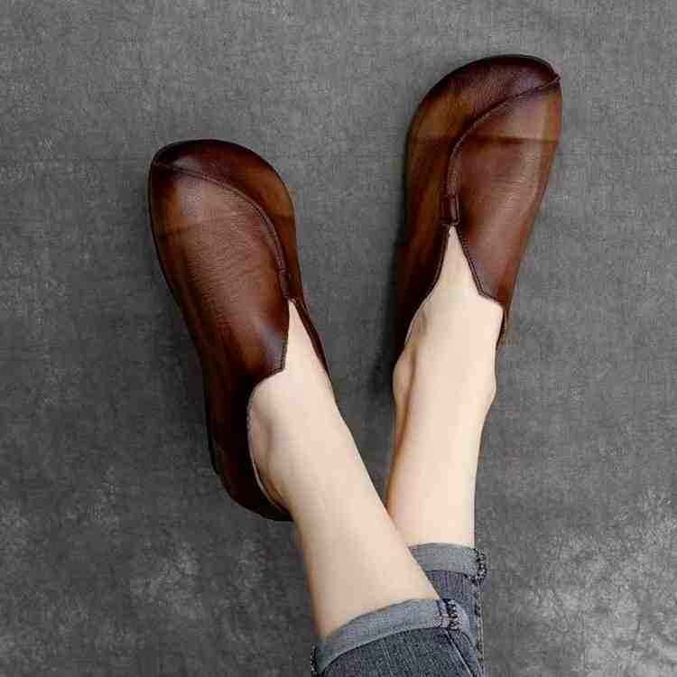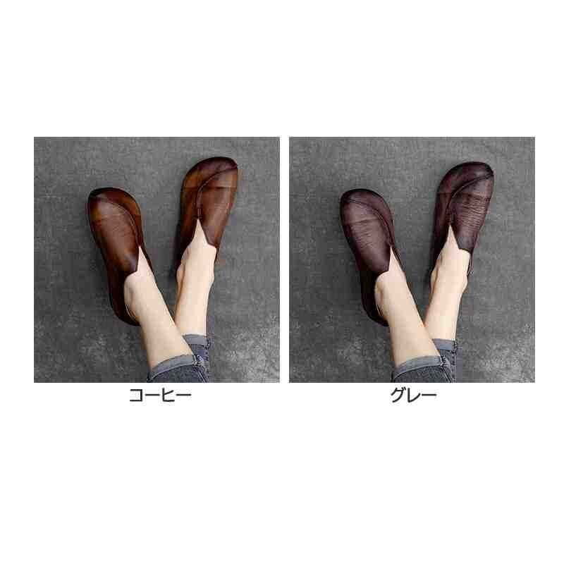 フラットパンプス フラットシューズ ぺたんこ パンプス フェイクレザー シューズ 38 コーヒー
