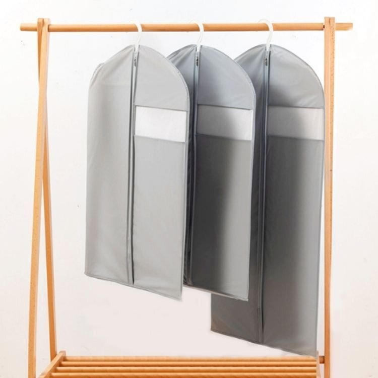 ◆洋服カバー 衣類カバー 不織布 防虫 透明窓付き 型崩れ防止 防塵 防湿 防カビ 収納用品 金属ファスナー 皺がないよう 洋服長期保管に 通気性 2枚セット グレー SUMI1113S2/130cm