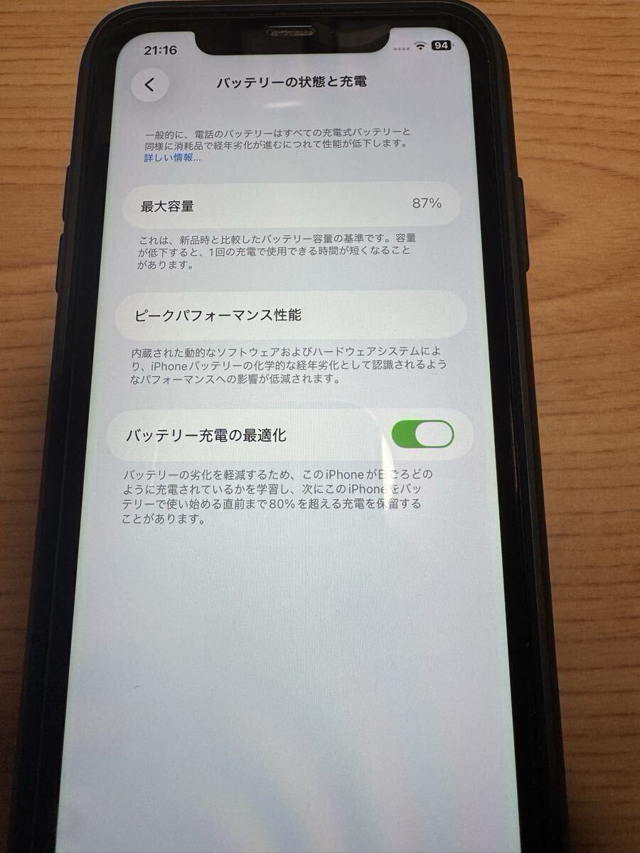 バッテリー最大容量は87%です。昨年Apple正規サービスでバッテリーを新品に交換しています。