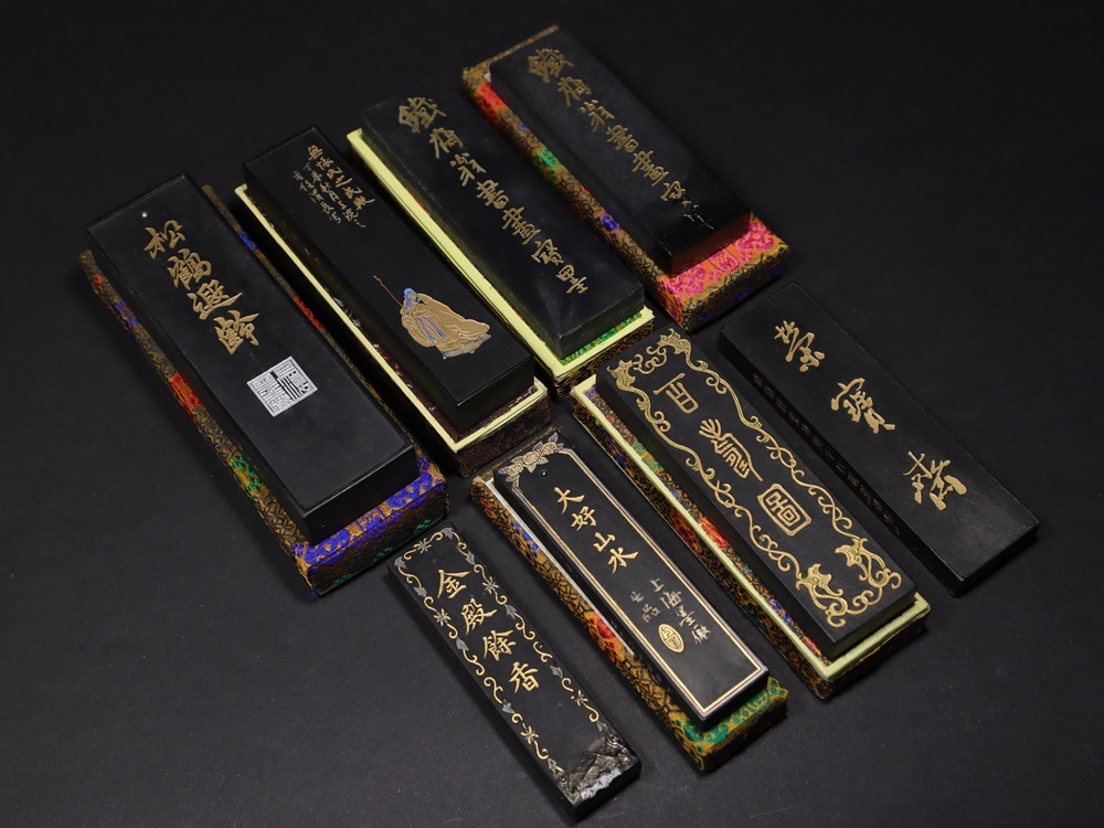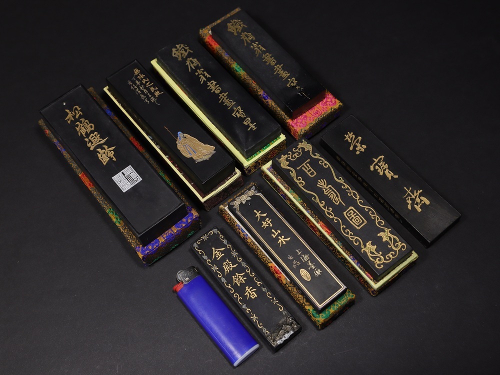 古墨 8本 鉄斎翁書畫寶墨 大好山水 松鶴避齢 百寿図 金殿餘香 栄寶斎 五石漆煙 存古堂 上海墨 中国 唐墨 唐物 古玩 書道具 文房四宝