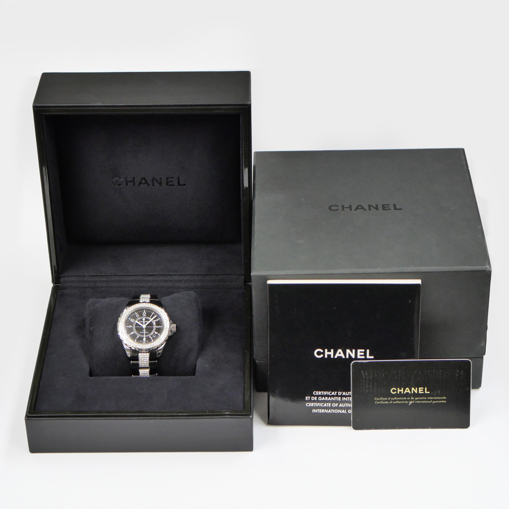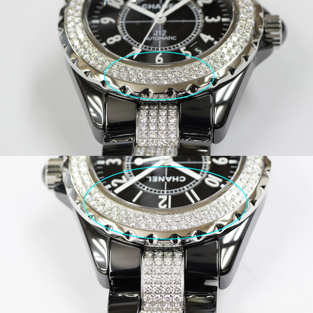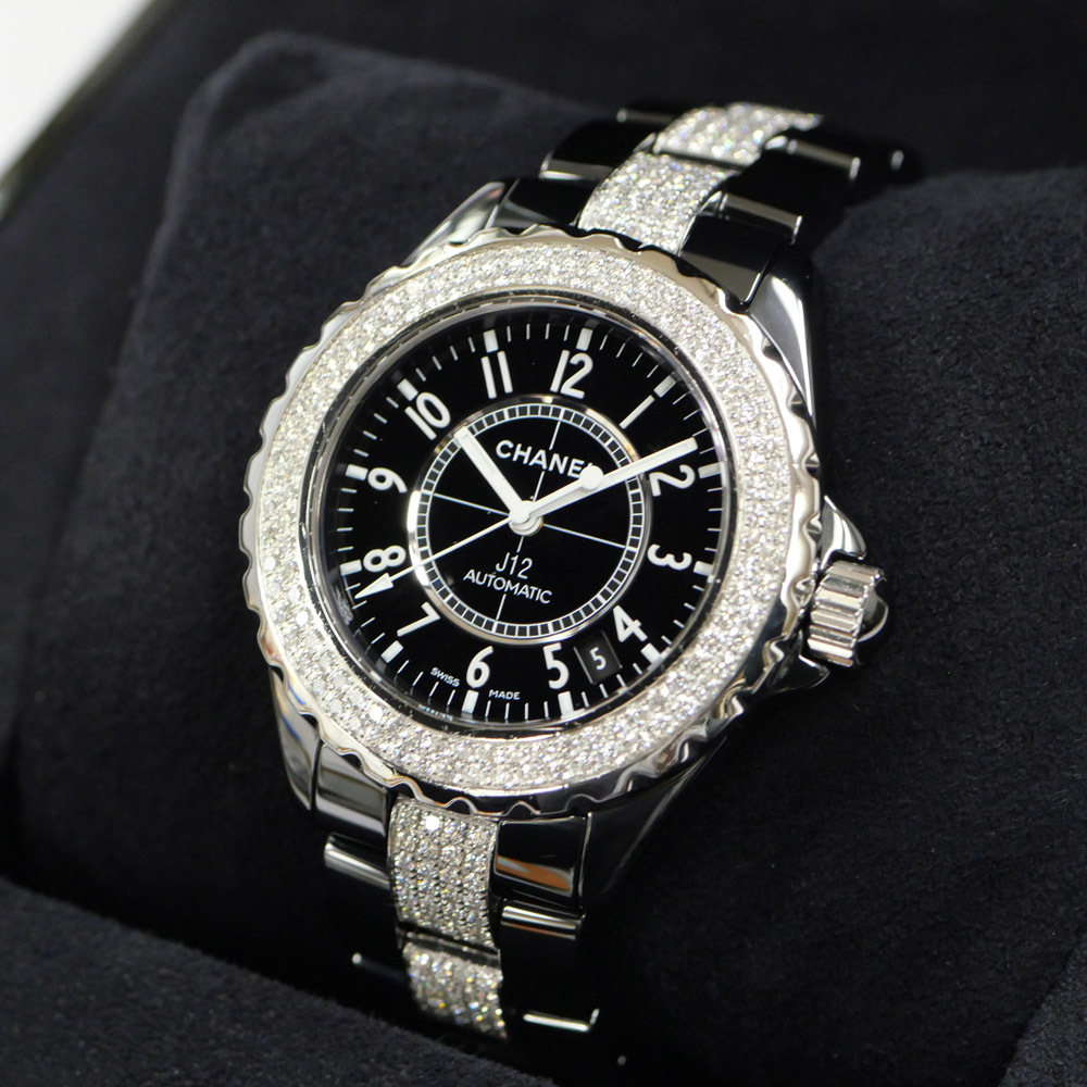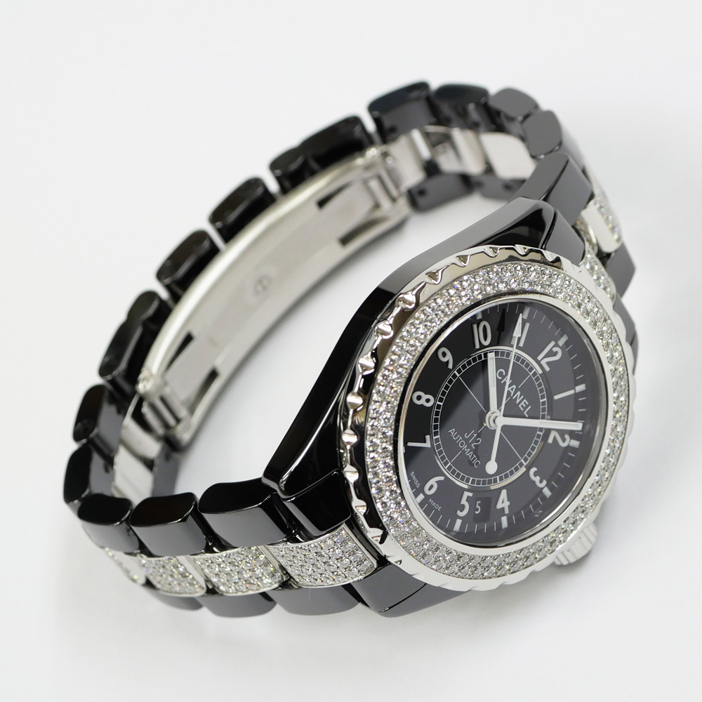 【名東】シャネル J12 38mm ダイヤベゼル H1339 ブラック文字盤 セラミック SS 自動巻 腕時計 メンズ OH済仕上げ済