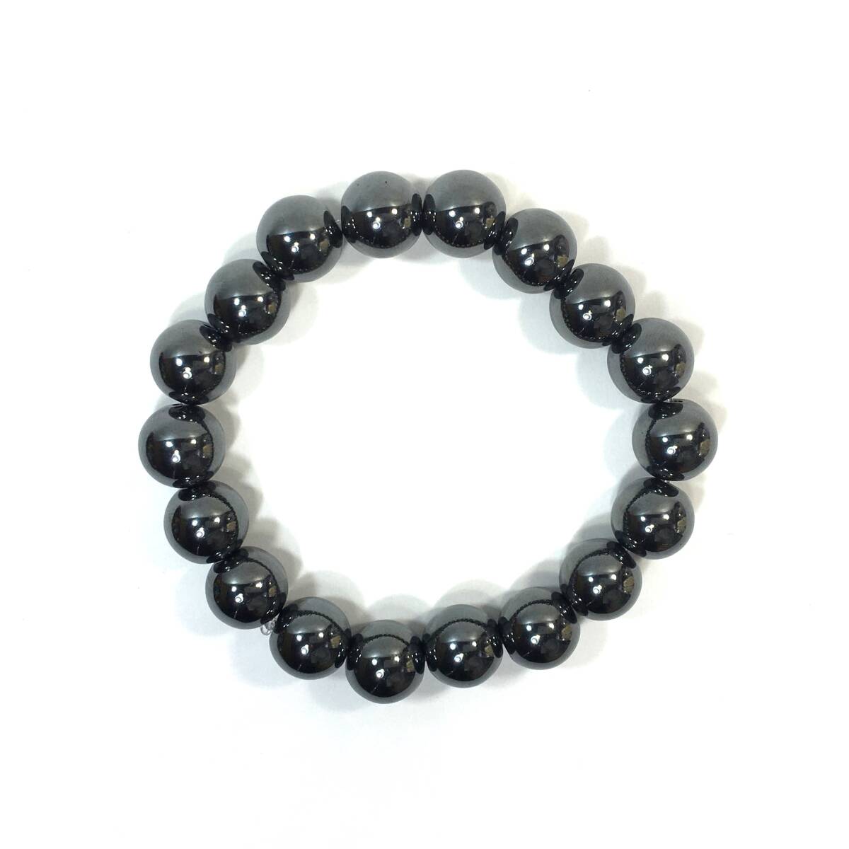 こちらは、ヘマタイトの12mm玉を使用したパワーストーンブレスレットです。シンプルなデザインですのでどんなコーディネートとも合わせ易いブレスレットです。程よくインパクトがある12mm玉を使用して内径約17cmです。(サイズ変更の場合は取引ナビにてご連絡をお願いします。) 数に限りがございますので気になる方はお早めにどうぞ。