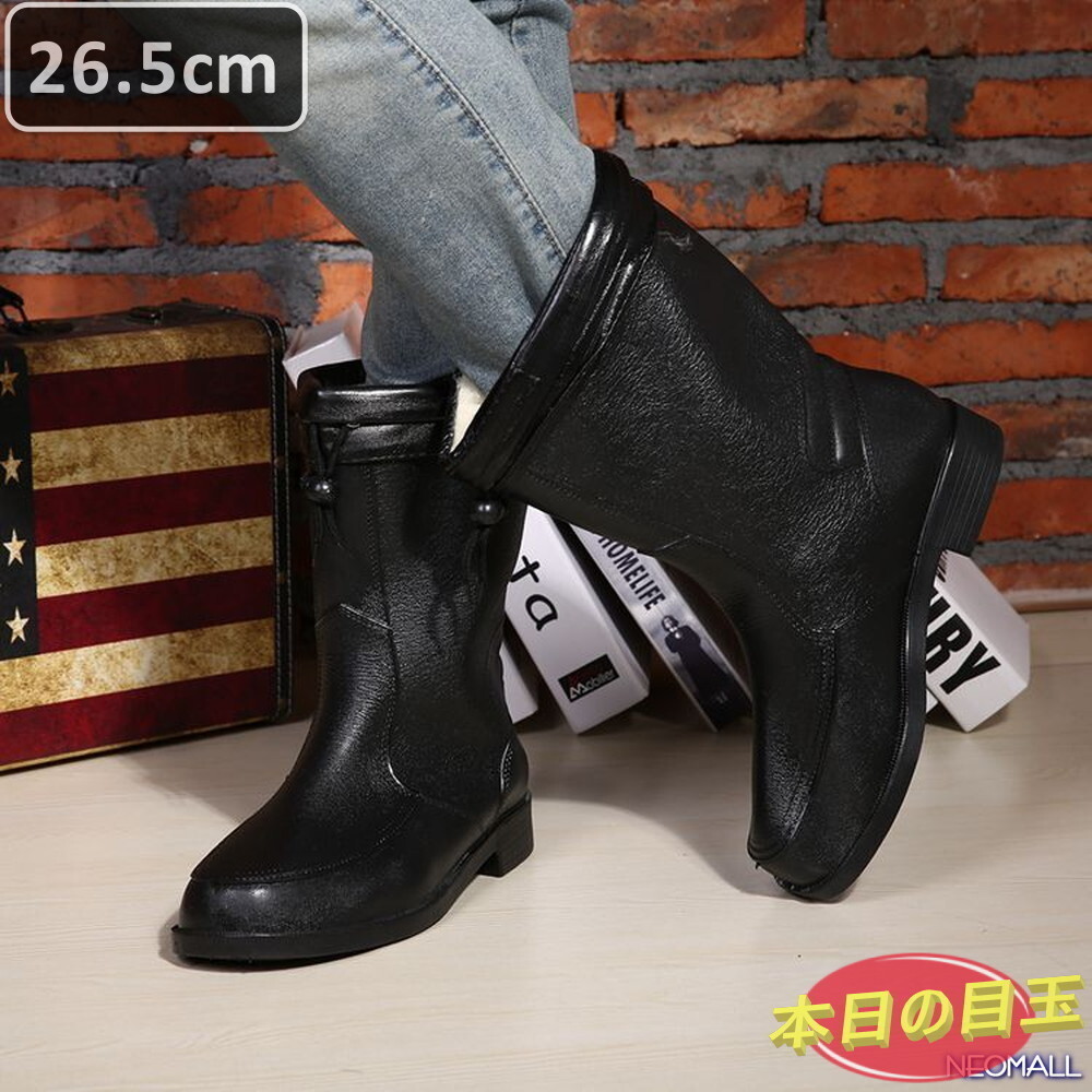 1スタ ☆【481】メンズ レインシューズ ブラック 26.5cm オシャレ ショートブーツ シンプル 梅雨 雨 長靴 雨靴 防水
