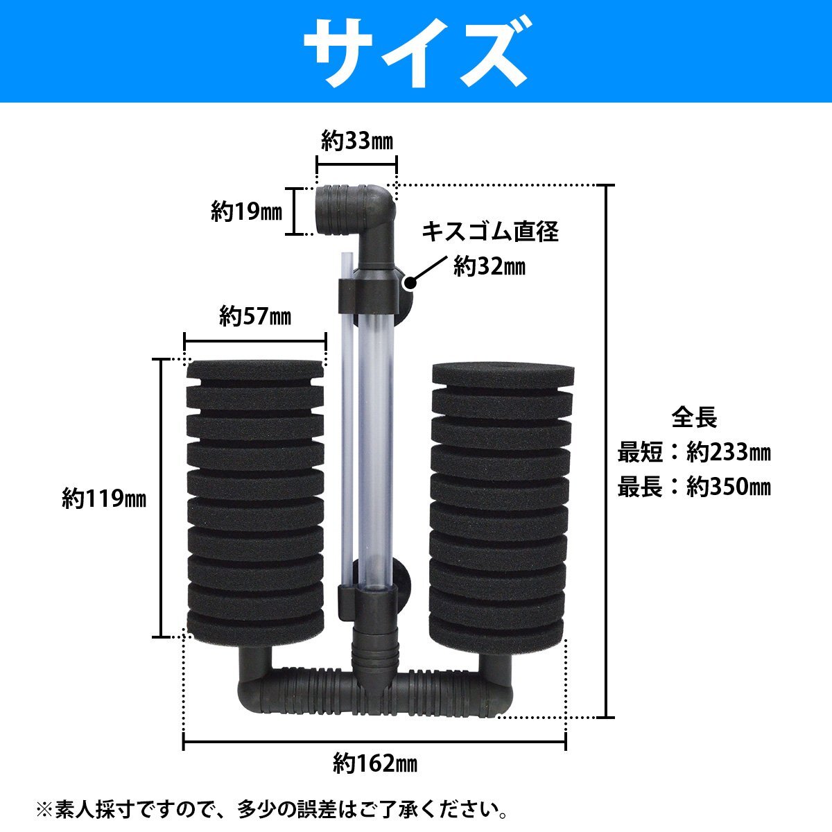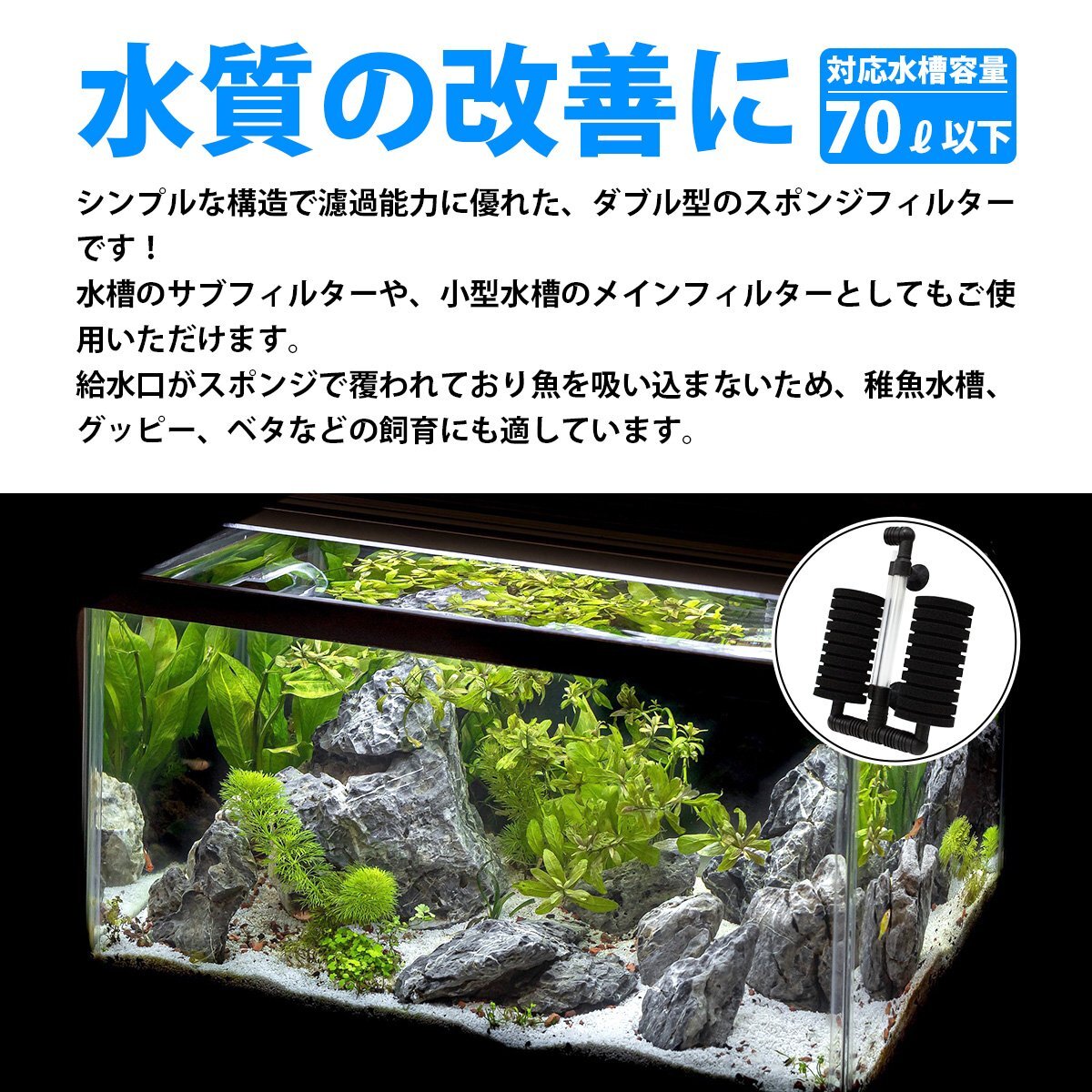 水槽 ツイン スポンジフィルター 35cm 70L以下 酸素 ろ過 メンテナンス 水質維持 水質管理 ろ過装置 エアーポンプ