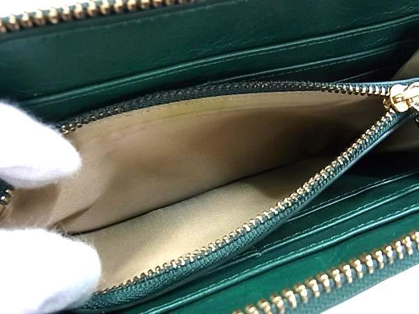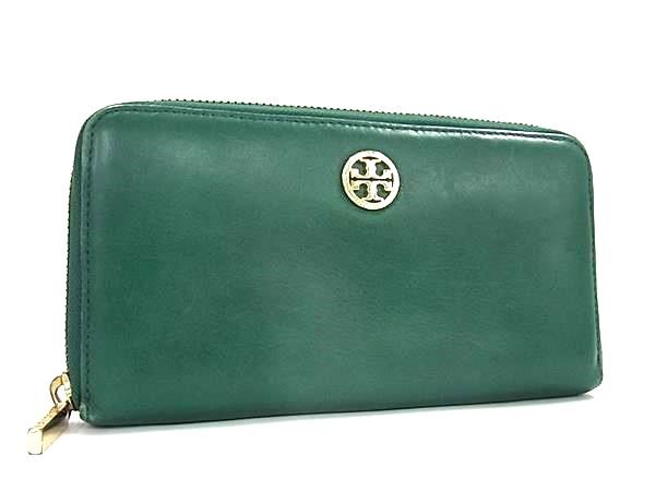 ■美品■ TORY BURCH トリーバーチ レザー ラウンドファスナー 長財布 札入れ 小銭入れ レディース グリーン系 DI7143