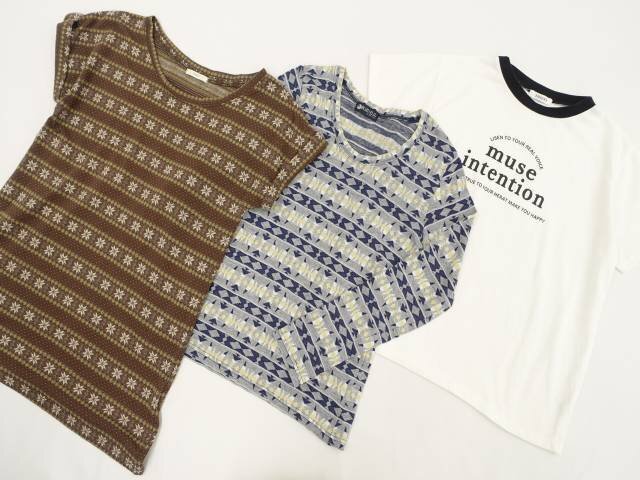 半袖カットソー+長袖カットソー+半袖チュニック M相当 アイボリー地 ブラック 英字/グレー地 ネイビー×イエロー 総柄/ブラウン地 アイボリー×イエロー 総柄