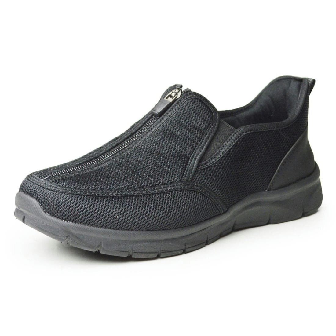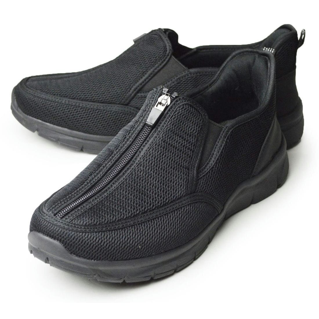 新品■25.5cm 軽量 スリッポン 幅広 4EEEE メディカルシューズ ナースシューズ 着脱簡単 メンズ 防滑 靴 フロントジップ 黒 茶【エコ配送】