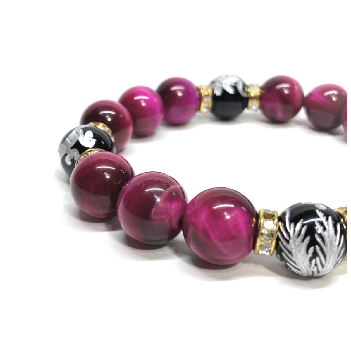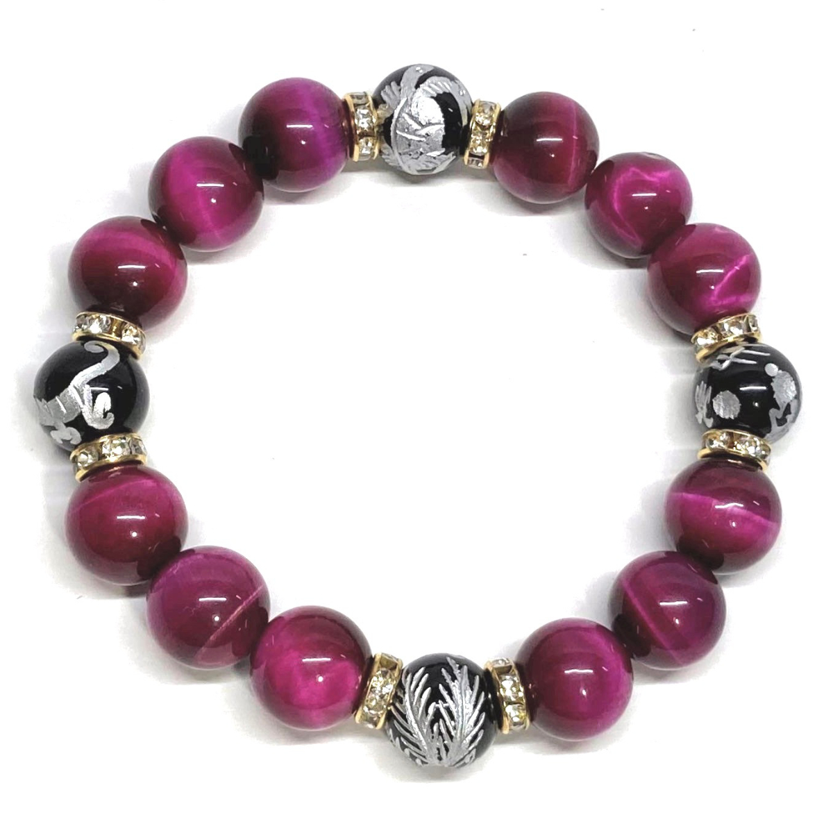 こちらは、四神獣銀彫オニキとピンクタイガーアイを組み合わせたパワーストーンブレスレットです。四神獣は、中国の伝説で4つの方向(東西南北)を守護する神聖な神。四神獣、厄災から身を守り、多くの運気を呼び込むと言われております。石大きさは程よくインパクトのある12mm玉で内周 約17cmです。 数に限りがございますので気になる方はお早めにどうぞ。