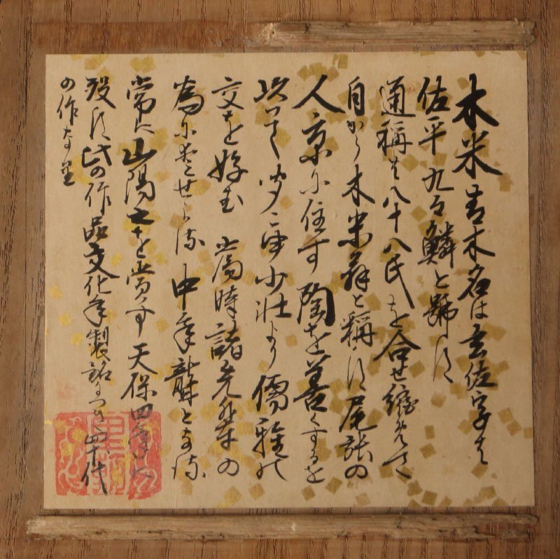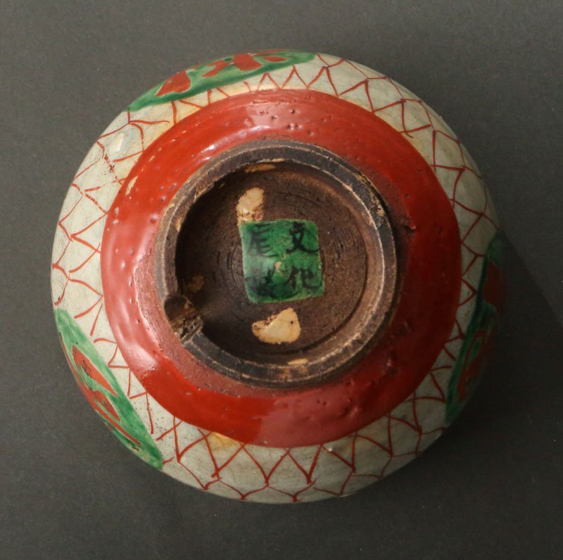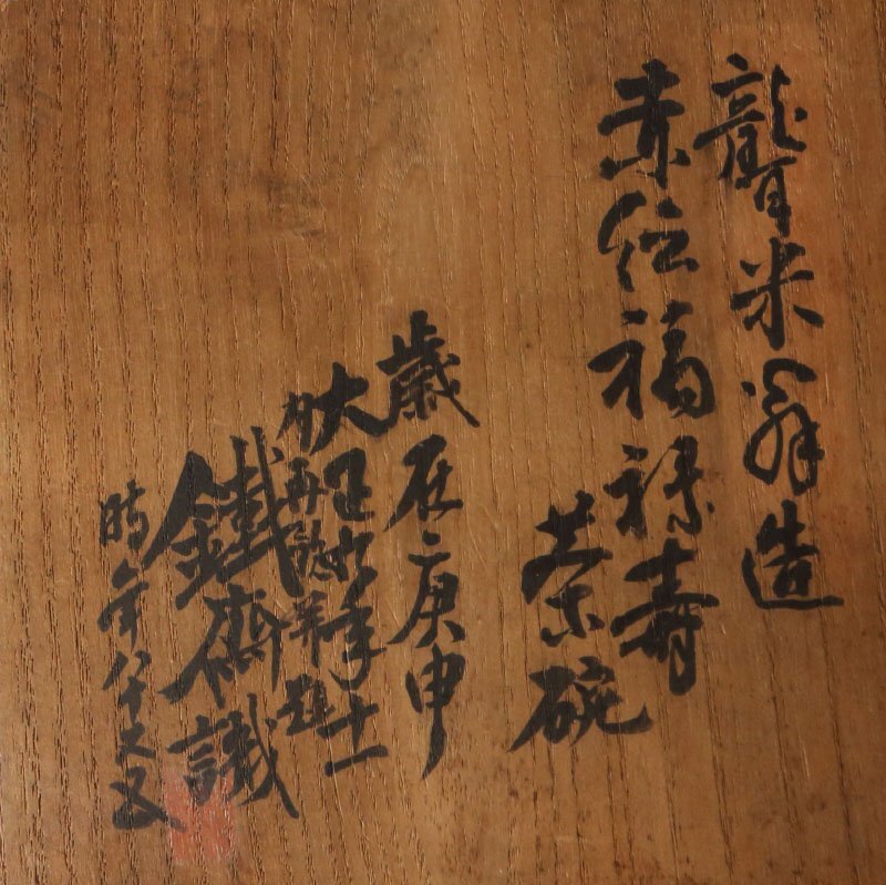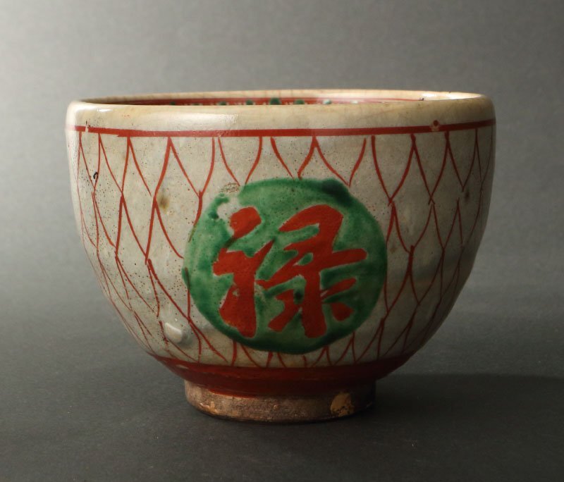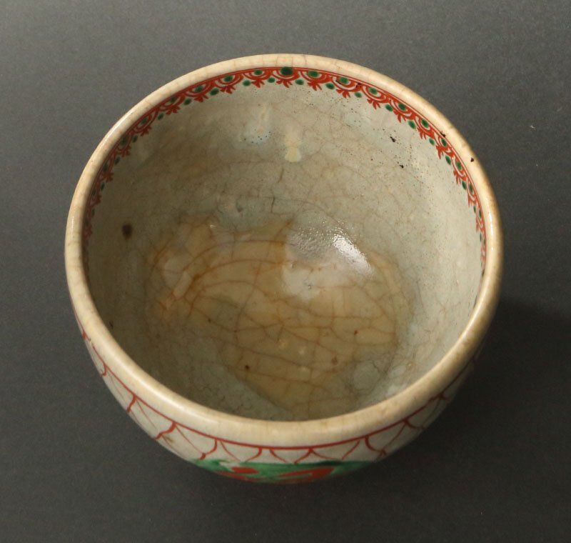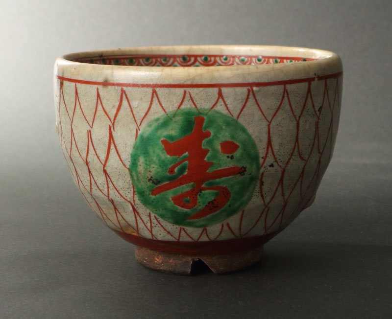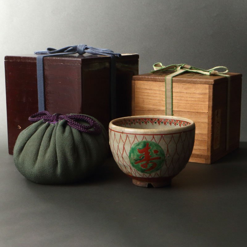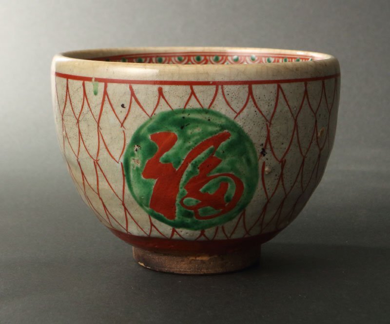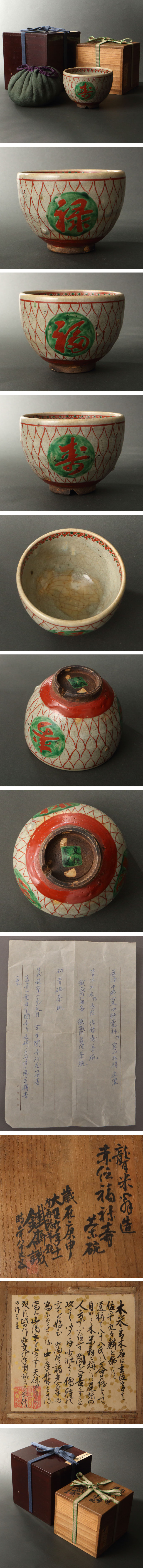 青木木米 赤絵福禄寿茶碗 富岡鉄斎識 ※仕覆添え