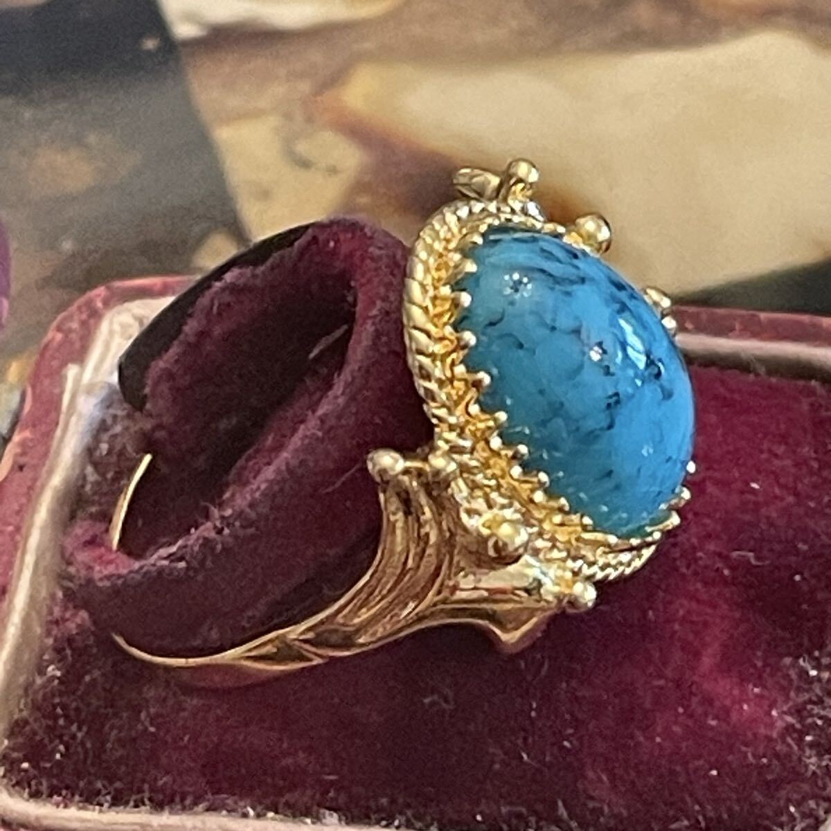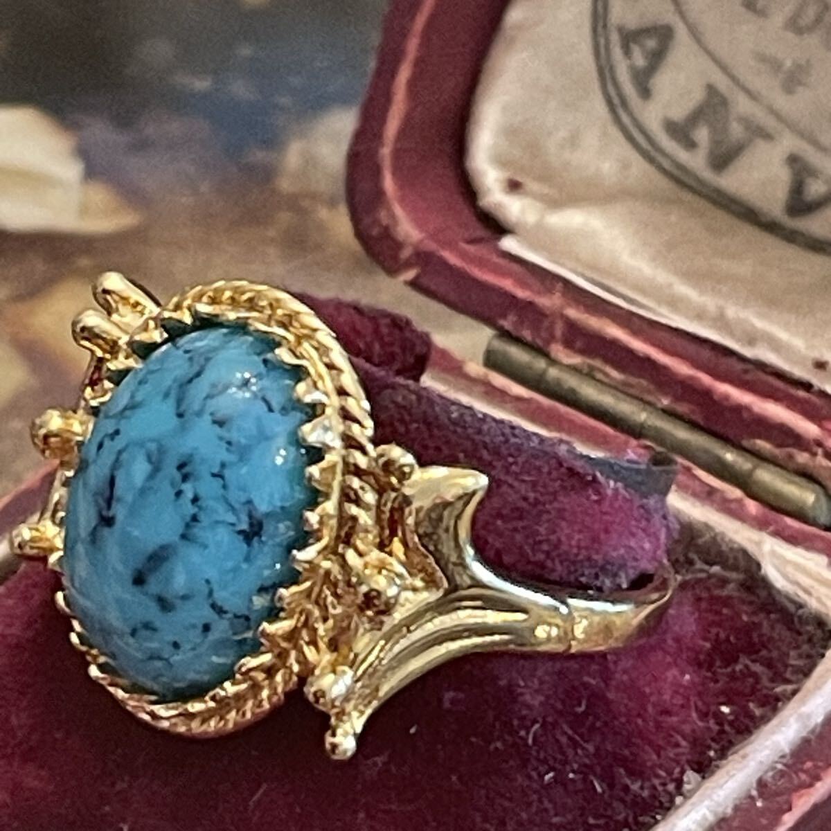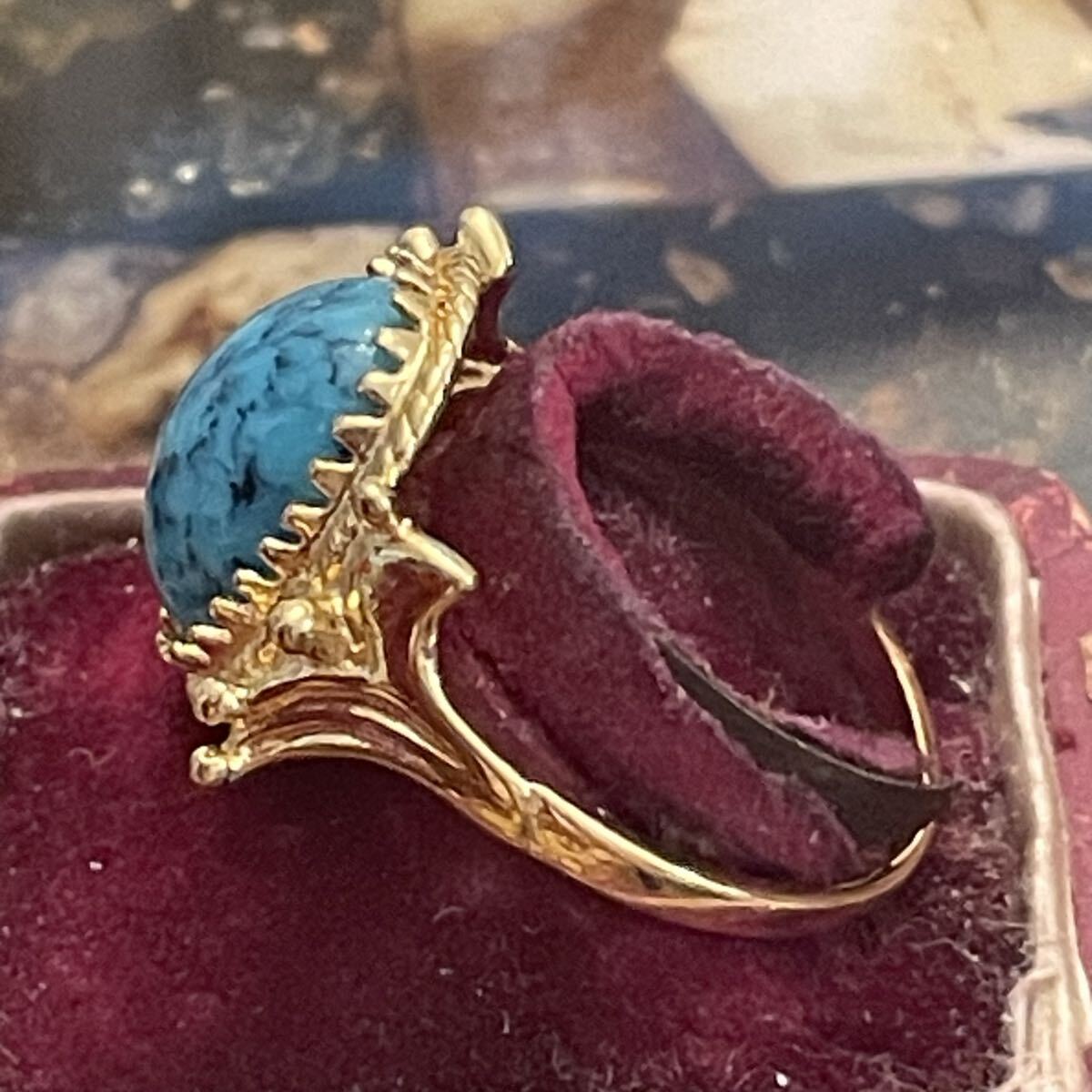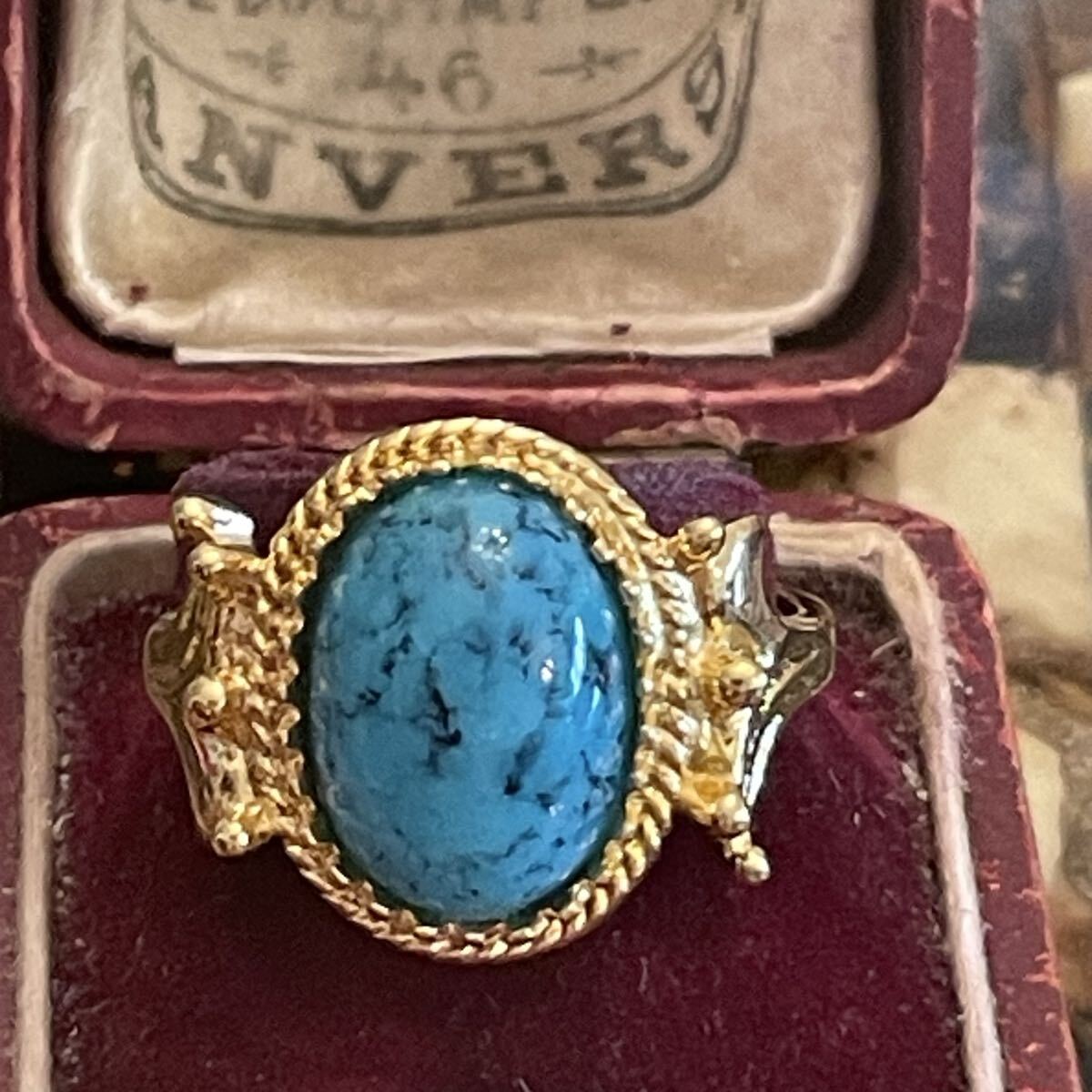 イギリス 英国 ヴィンテージ トルコ石風 演劇 小道具 指輪 リング 19.5号 メンズ レディース 男女兼用 ユニセックス ターコイズブルー 金色 ゴールド 蚤の市 ブロカント ビンテージ
