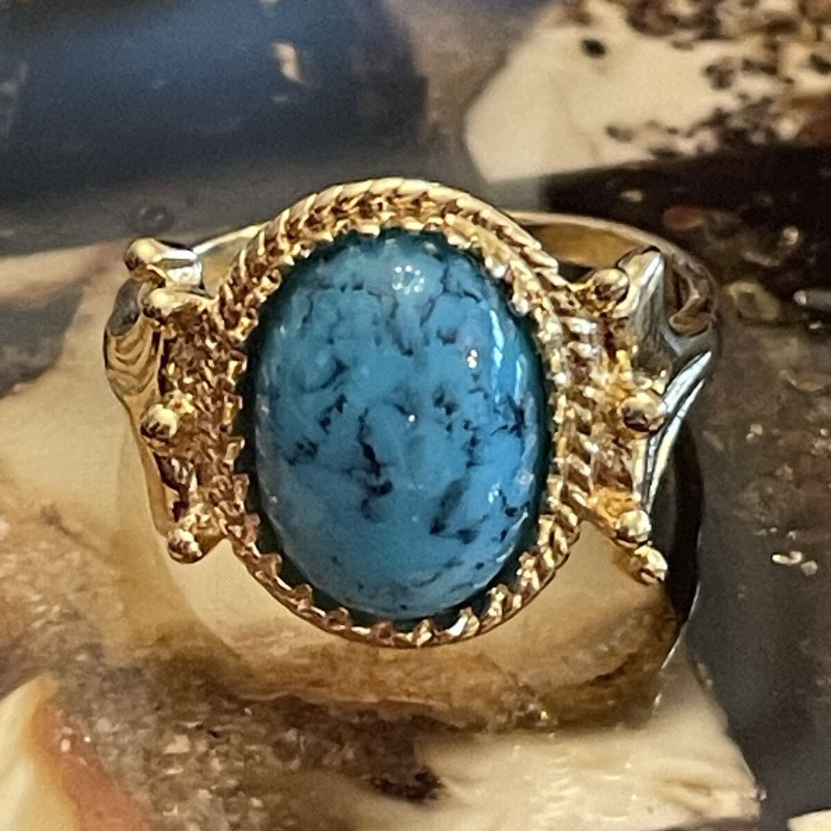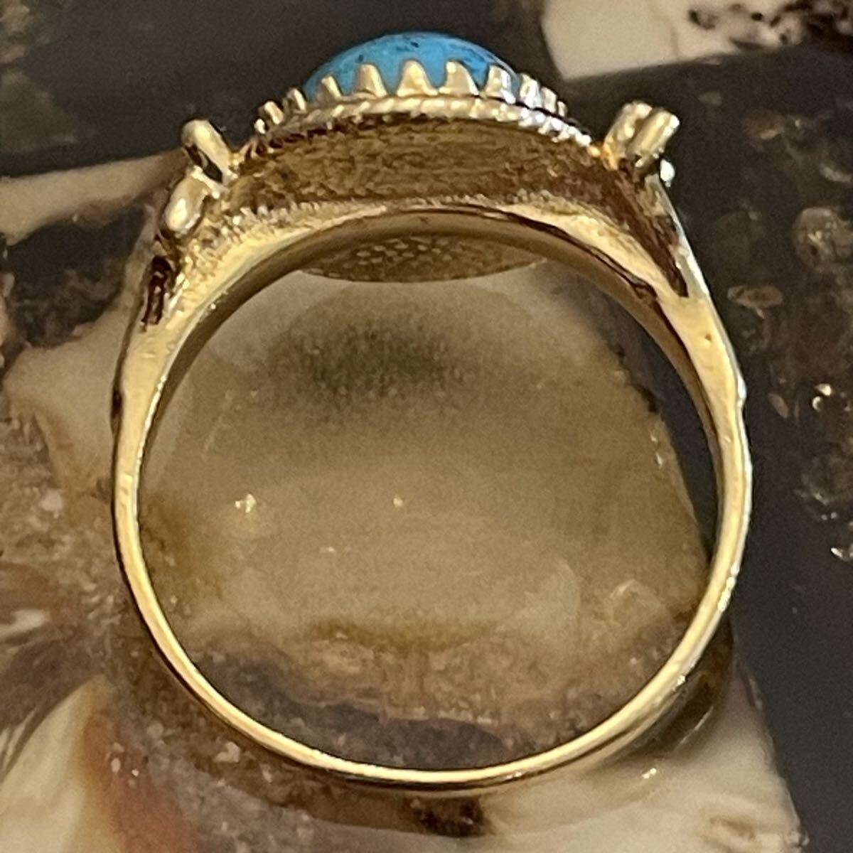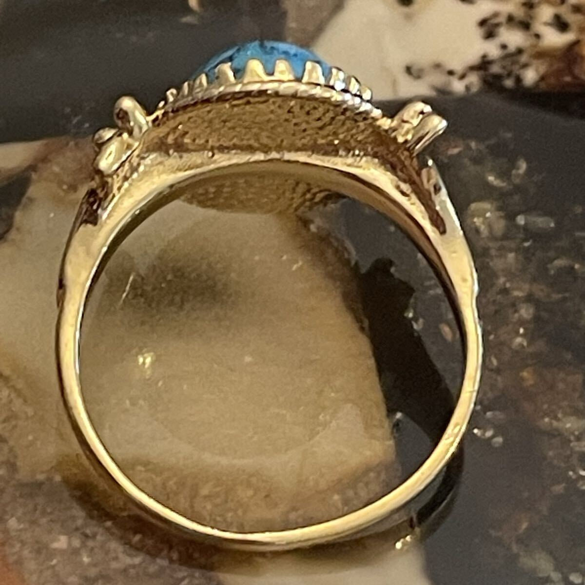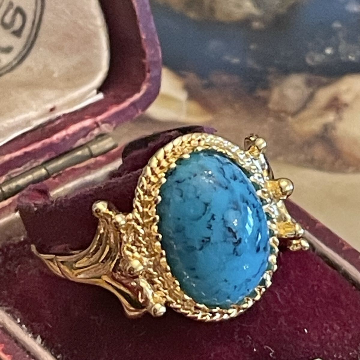 イギリス 英国 ヴィンテージ トルコ石風 演劇 小道具 指輪 リング 19.5号 メンズ レディース 男女兼用 ユニセックス ターコイズブルー 金色 ゴールド 蚤の市 ブロカント ビンテージ