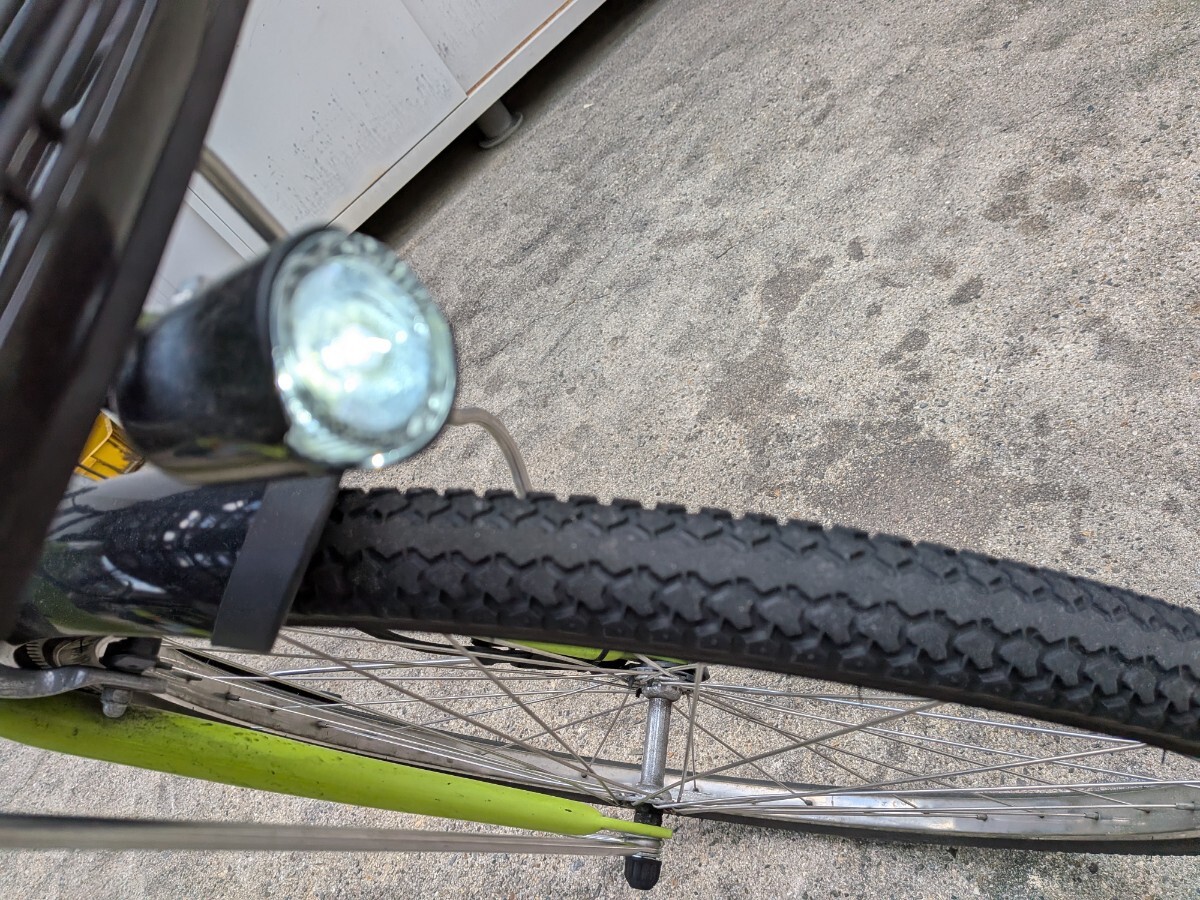 前輪タイヤは まだ 山がありますが 後輪タイヤはツルツルです