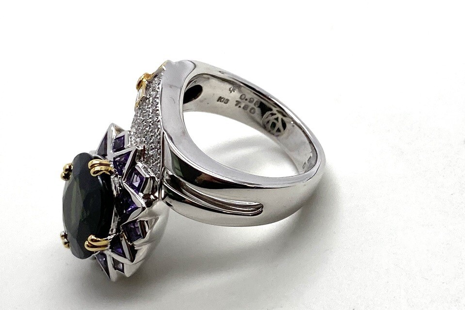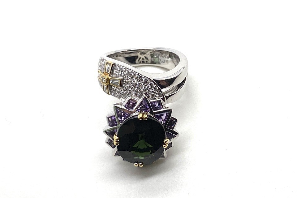 | 品名 | JEWEL STUDIO 【ジュエルスタジオ】 K18WG/YGグリーンサファイヤ ダイヤモンド アメシストリング |
