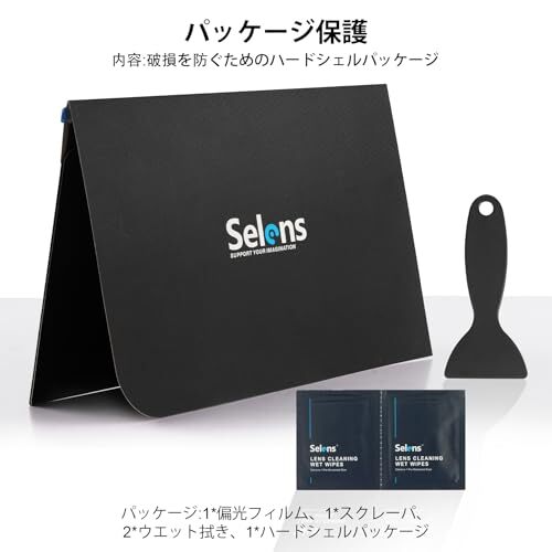 Selens 偏光フィルムシート 非粘着 液晶スクリーン 線形偏光フィルター 20x30cm 1枚入り 高偏光度 裁断やすい スクレーパー付き