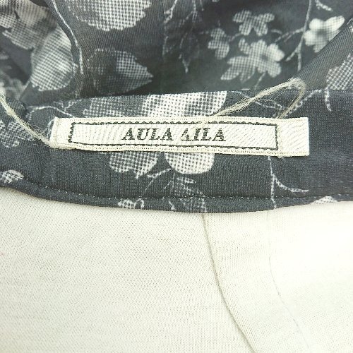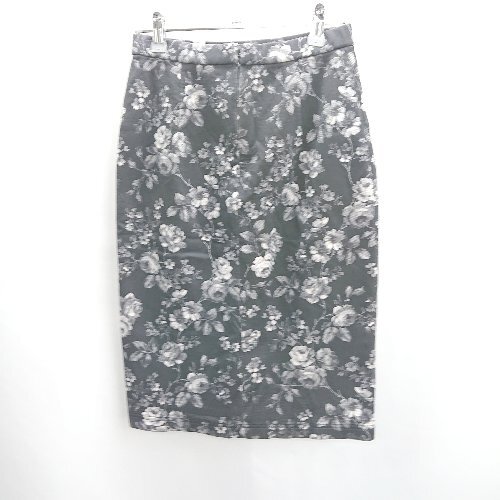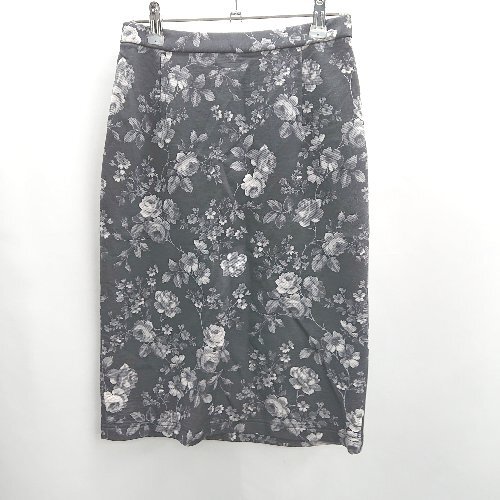 ◇ Θ AULA AILA アウラアイラ ウエストゴム 花柄 ミディ ストレート スカート サイズ 1 ブラック系 レディース E